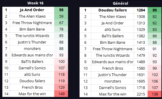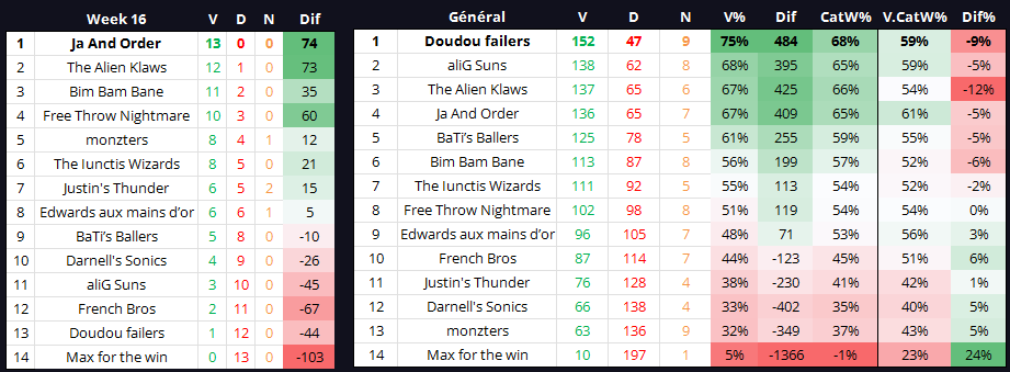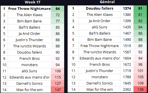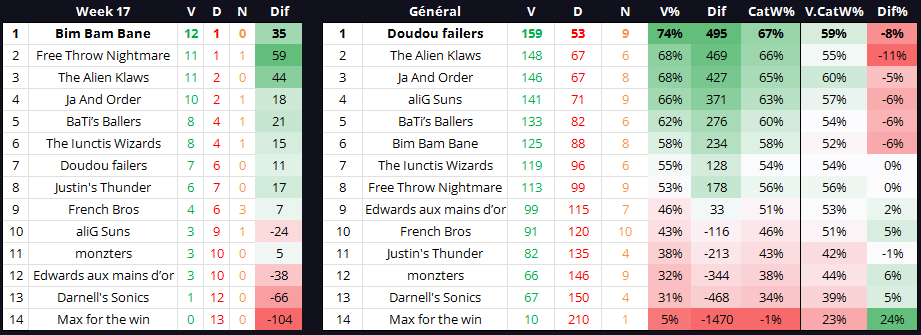 | Doudou failers | 6 | 74 | 73 | 6 |
