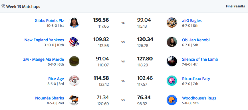 O-Loss : Nombre de défaites contre l’ensemble des autres équipes
