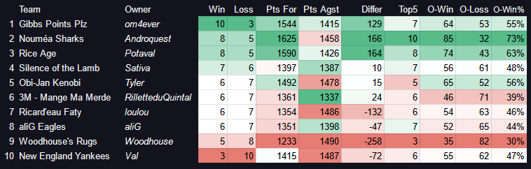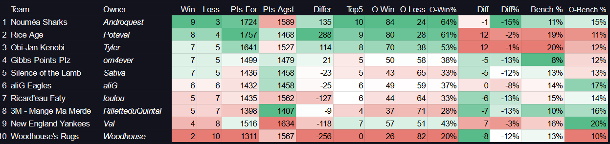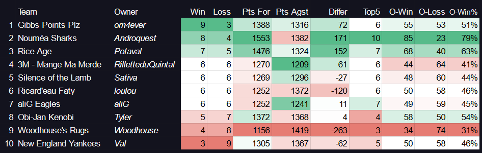 O-Win% : Pourcentage de victoire contre l’ensemble des autres équipes