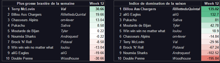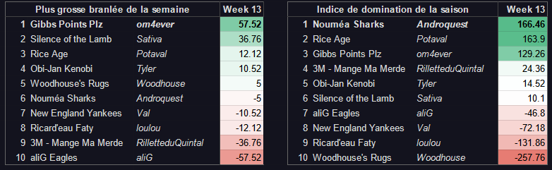 Top7 : Nombre de fois où l’équipe était dans la première moitié des scores.