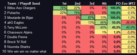 J’ai mis en paramètre que tu aurais moins de points marqués à la fin de la saison que le Top 4, donc il te donne 0% de chance de doubler un des 4 premiers à ratio de victoires égal. ![]()