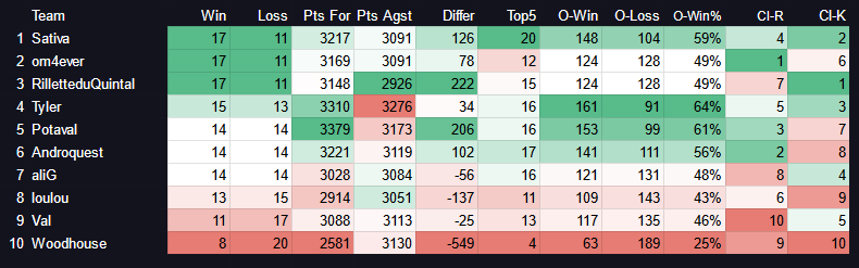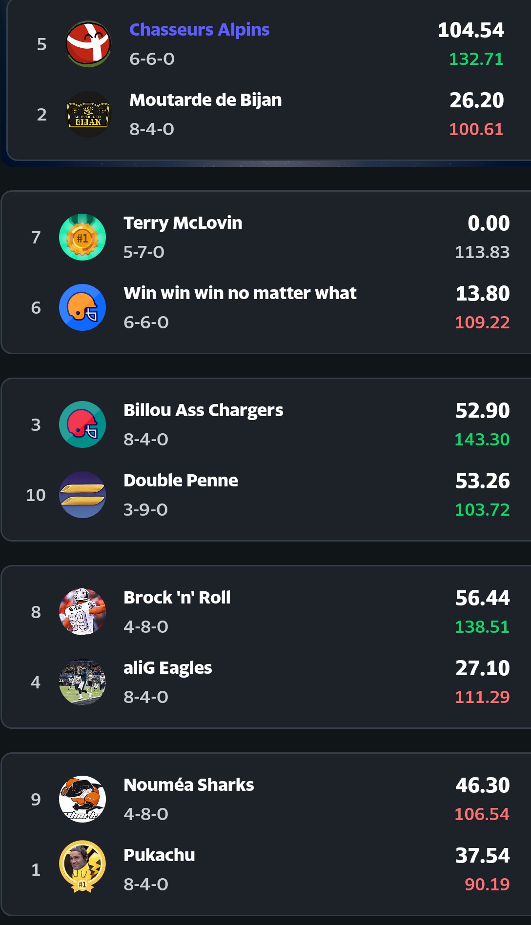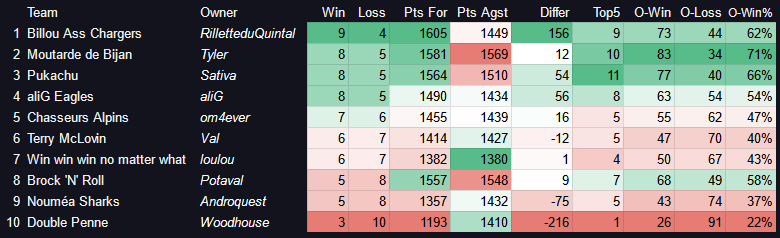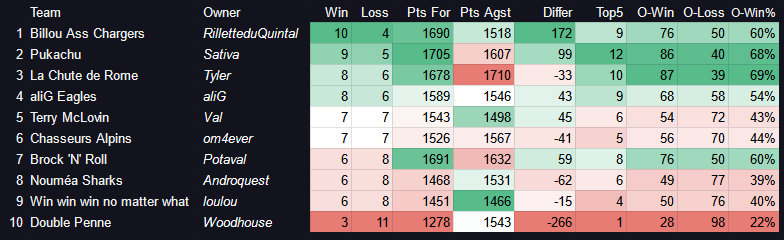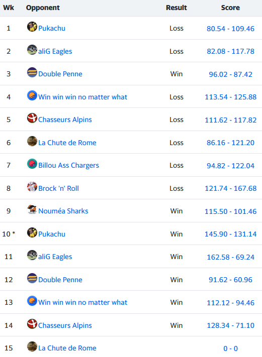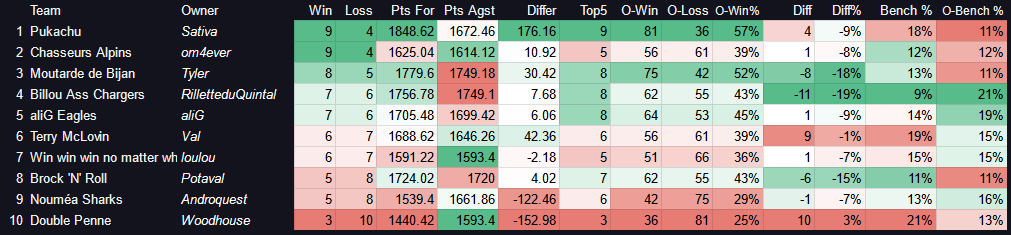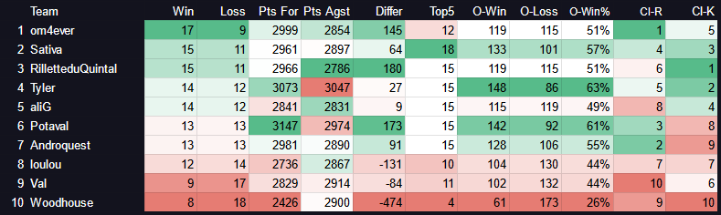 7e place, mon plus haut classement de la saison sur les deux ligues confondus. ![]()