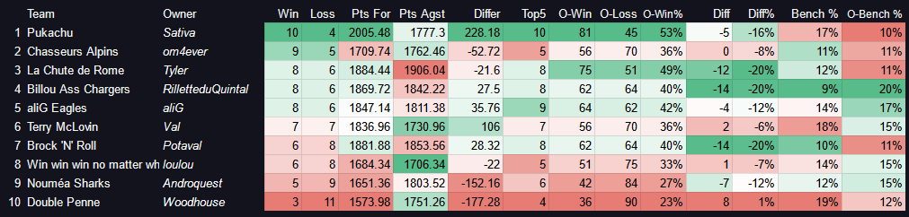 O-Win% : Pourcentage de victoire contre l’ensemble des autres équipes
