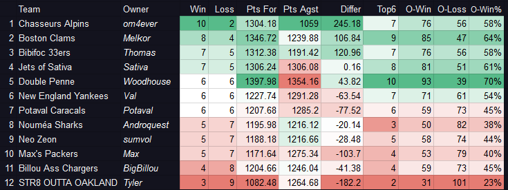 Des choix à la con un peu partout et +50 points raté en optimum pour finir la saison réguliÚre.