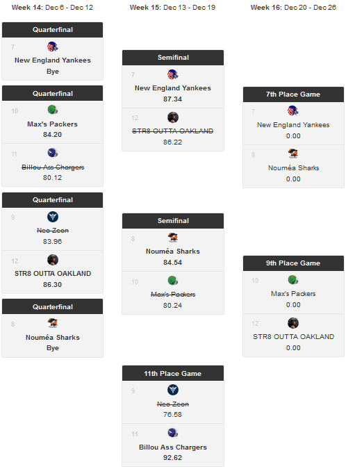 Pour @Woodhouse, cette 15ème semaine aura bien symbolisé sa saison : il aurait battu tout le monde cette semaine, sauf moi. Moins caractéristique : les points,et donc la finale, laissée sur le banc.