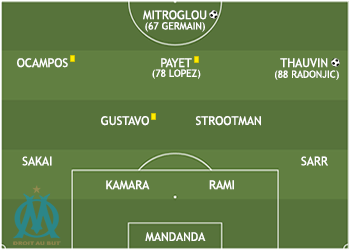 | GERMAIN | Il est entré pour apporter plus de mobilité. L’OM a arrêté de jouer assez vite et le pressing n’est pas sa priorité du moment, donc on l’a pas vu. | |