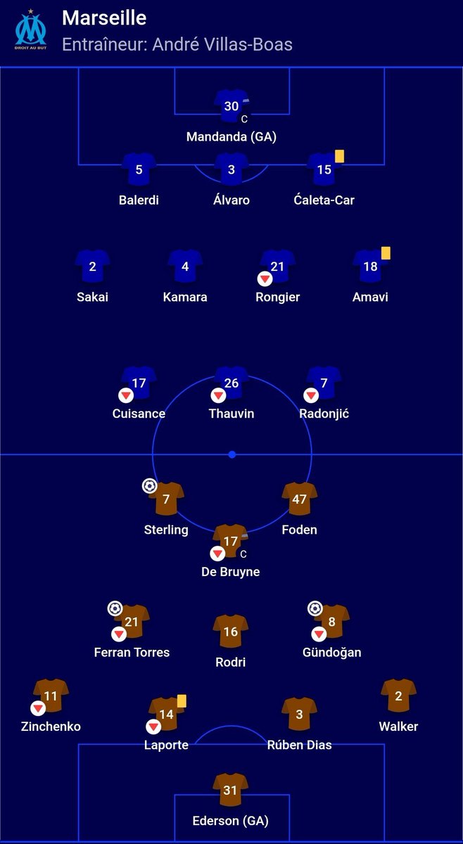 ForcĂ© de faire jouer Thauvin en pointe parce que les deux autres sont totalement bidons (Dario & Germain). AVB qui pĂšte son cĂąble et refuse de faire jouer Payet dans lâaxe, quitte Ă le mettre sur le banc parce quâil dĂ©cide dâaligner 5 dĂ©fenseurs (score final 3 - 0 dâailleurs, avec City qui sort tout le monde Ă la 70Ăš) et personne Ă gauche (pas Payet du coup).