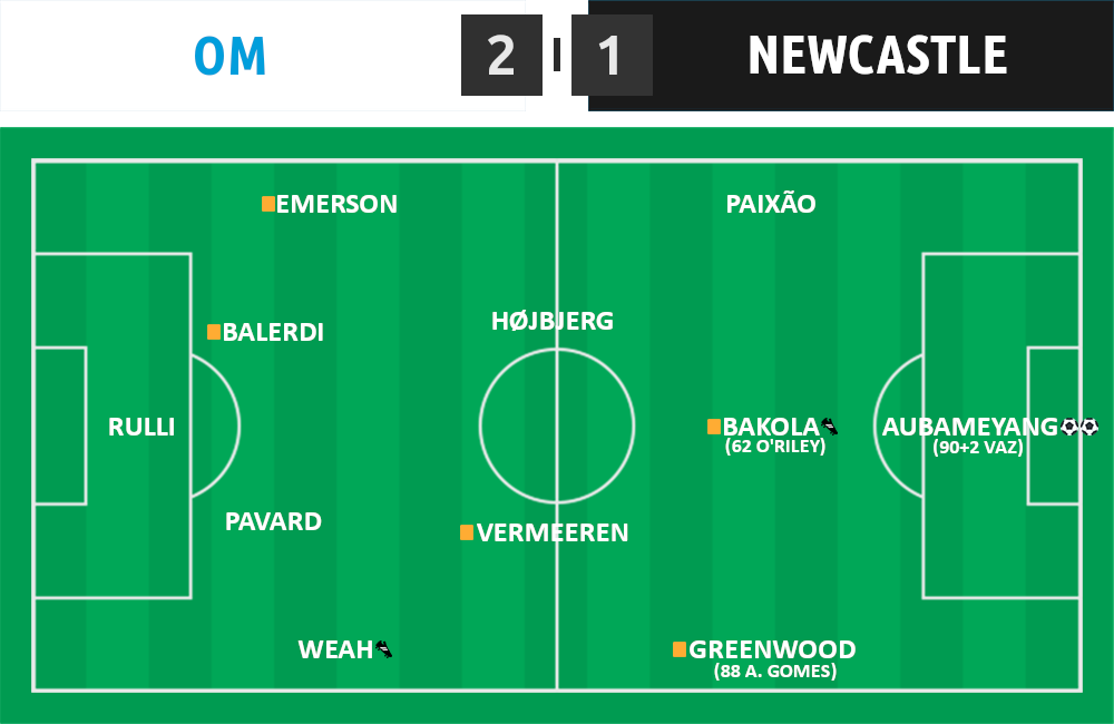 L’intensité, le pressing de Newcastle était attendu mais c’est comme s’il avait surpris l’OM qui a mis un gros quart d’heure avant de rentrer dans son match. Et une petite dizaine de minutes en plus avant de vraiment produire quelque chose. Mais Auba n’a pas réglé la mire et les cadeaux de Greenwood sont gâchées. Mais il y a du positif, même sans être brillants (même si on a eu de bonnes séquences de circulation de balle dans leur camp) on a des opportunités. Aussi, on n’a pas coulé et Newcastle a dépensé pas mal d’énergie.