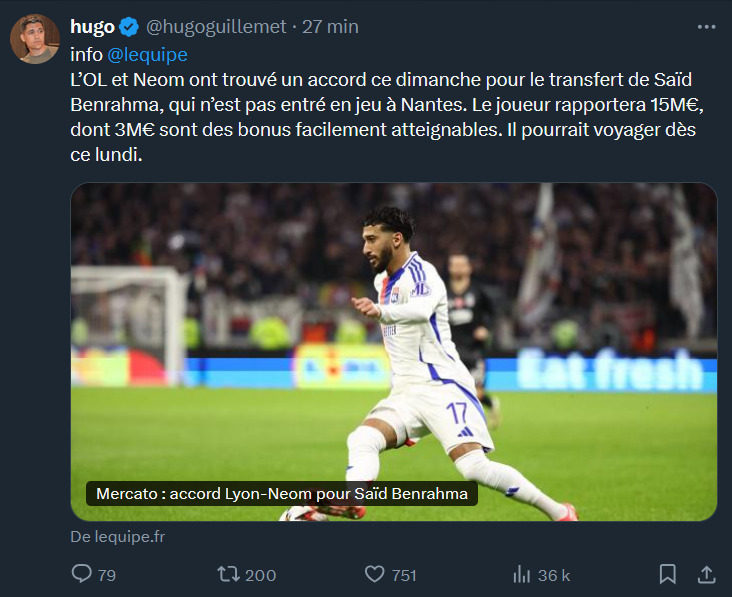 Sur X la communautĂ© de footix de lyonnais demande fortement le dĂ©part de Sage et Textor on connait son explosivitĂ© avec les coachs (trĂšs peu patient, gestion Ă la con). Sauf que sur le dernier match si les entrants comme AMN ou Mikautadze font ne serait-ce quâun minimum leur taff on ne perd jamais. Et si des mecs comme Lacazette se remettent Ă jouer au football on gagnerai facilement ce match 2 ou 3 Ă 0. Câest un scandale le scĂ©nario dâhier et ça devient inquiĂ©tant parce que ça se reproduit trop.