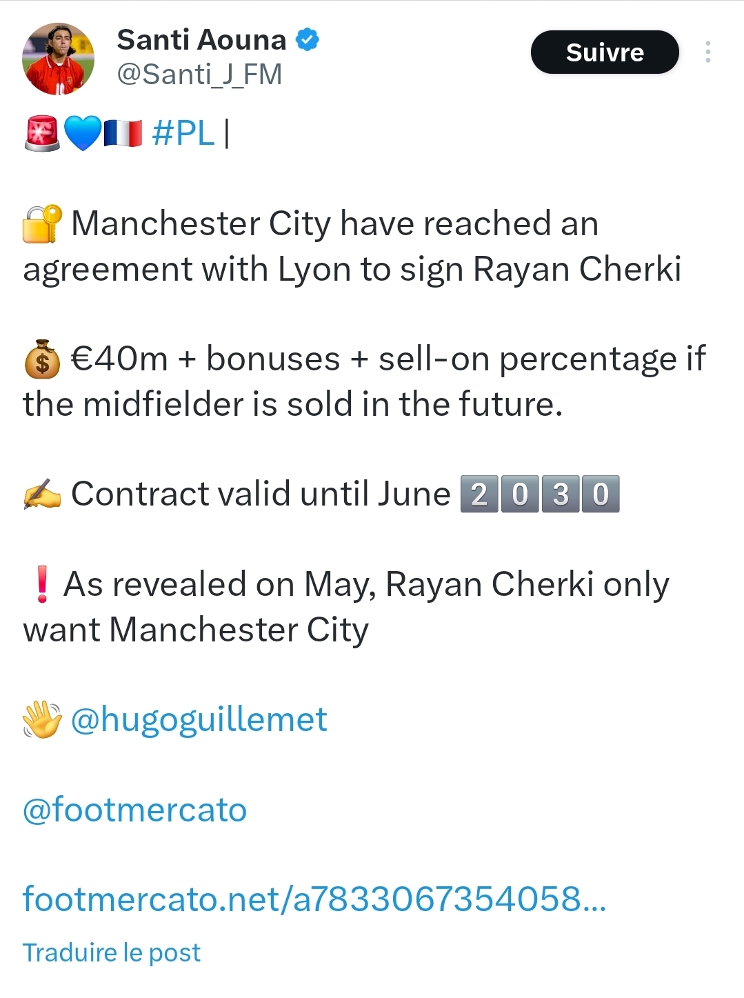 En mĂȘme temps quand Cherki prolonge il a une clause oral Ă 22,5M il me semble ? CâĂ©tait pas dĂ©jĂ le dĂ©lire de Dortmund en Janvier ?