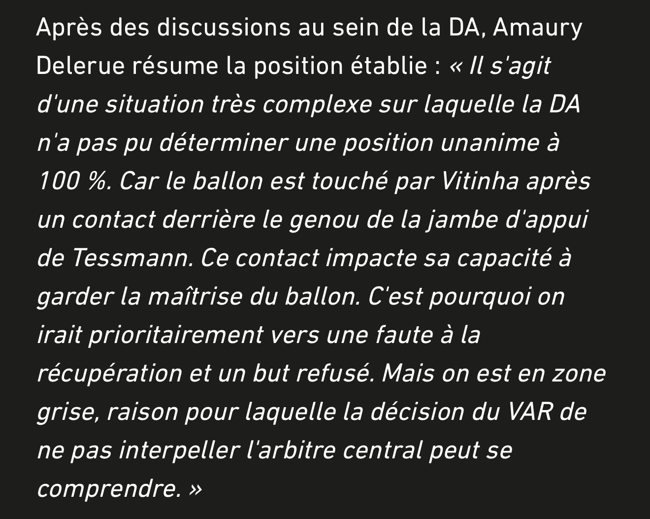 La faute de Tessman par contre tous les jours il faut siffler, comment la VAR peut valider ca.