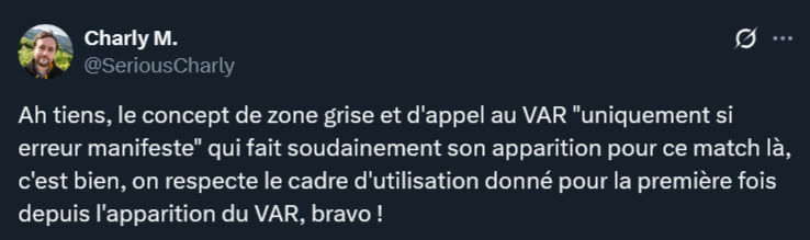 Mais mĂȘme avec tout ça câest incroyable que la VAR ne soit jamais intervenu.
