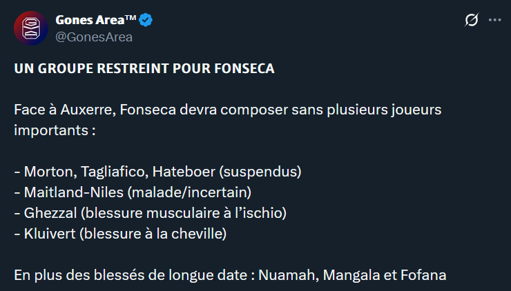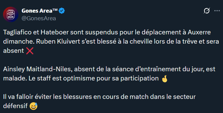 On pensait avoir la trĂȘve pour rĂ©cupĂ©rer nos joueurs, on repart avec encore moins de joueurs quâavant. Câest dingue quâon enchaĂźne autant les soucis physiques.. entre ça et les suspensions ça commence Ă peser sur le groupe. En rajoutant les blessures longs termes de Mangala, Nuamah & Fofana ça fait beaucoup lĂ . Il va falloir faire gaffe avec la CAN qui va arriver aussi.