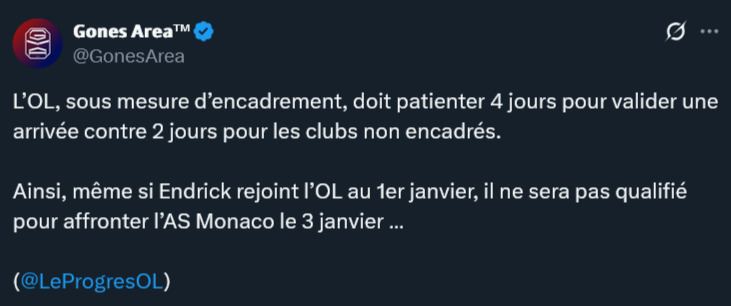 Câest ça. Le club nâaura pas lâoccasion dâacheter un joueur surtout que le mercato dâhiver est loin dâĂȘtre simple, surtout en attaque. Soit le mec est nul et le transfert sera dĂ©criĂ©, soit le mec est bon⊠mais du coup forcĂ©ment il coĂ»tera un bras.