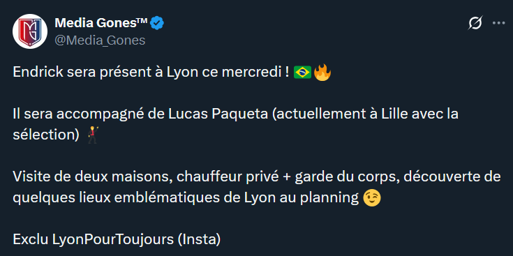 Mais au final on a pas mal de photos & vidĂ©os qui sortent aujourdâhui, Endrick & PaquetĂĄ sont bien Ă Lyon aujourdâhui.