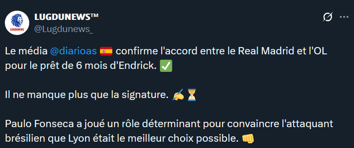 IntĂ©ressant le recrutement dâEndrick. Curieux de voir ce que ça peut donner en Ligue 1, vu tout le bien que ça disait sur lui au BrĂ©sil.