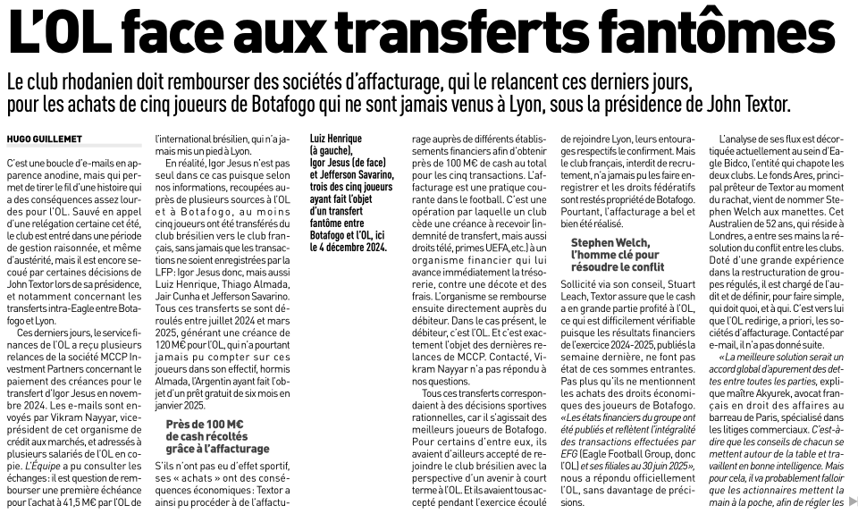 Et lâOL qui avait payĂ© Almada, Jair, Luiz Henrique et dâautres.. notre argent a payĂ© des types pour Botafogo et la plupart nâont jamais jouĂ© chez nous. Molenbeek a permis de faire Nuamah Ă lâOL quand la DNCG avait dit non pour lâargent qui Ă©tait dispo,.. bref câest un nombre fou de trucs du genre assez proche de lâillĂ©galitĂ© qui saoulait.