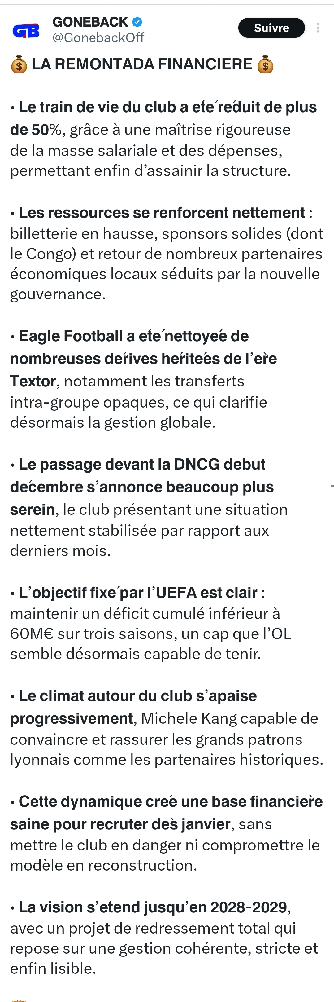 Ă voir selon ce quâon va faire cet hiver ! On doit surtout faire tirer jusquâau mercato et sa fin. Si on fait Endrick + un autre bon joueur + retours de Nuamah et Fofana fin janvier.. on peut vraiment faire une trĂšs belle 2Ăšme partie de saison.