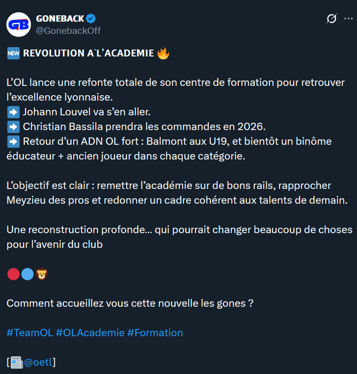 Il est surtout formĂ© Ă lâOL, du coup ça sonnait assez logique quâil revienne aider (comme pas mal dâici).