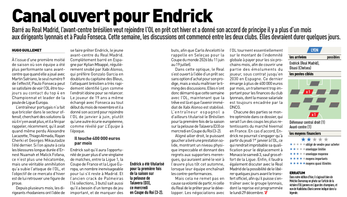 Mais il manque un joueur ici donc why not ! Il manque encore un mec de pointe (sĂ»rement Endrick) et aussi un dĂ©fenseur dâaxe (ça pousse pour Disasi). Par contre si on prend ces 2 derniers en prĂȘt il faut dĂ©jĂ anticiper lâĂ©tĂ© prochain.