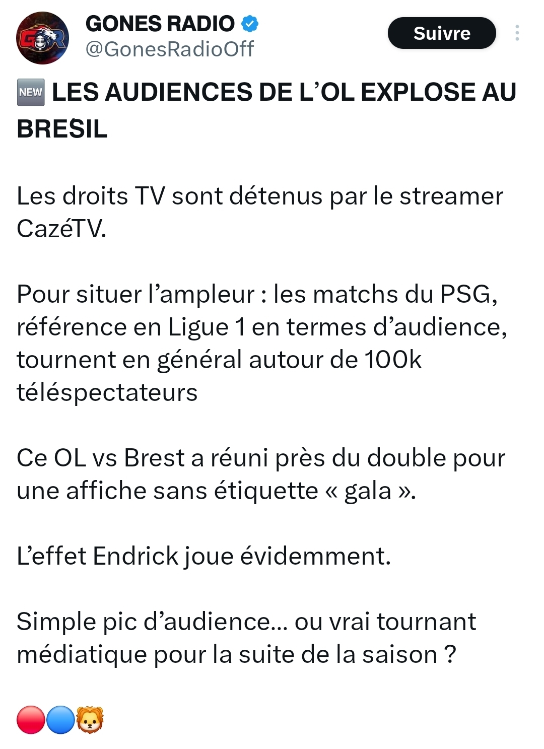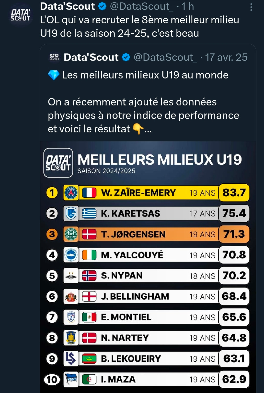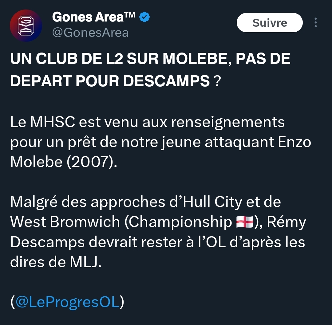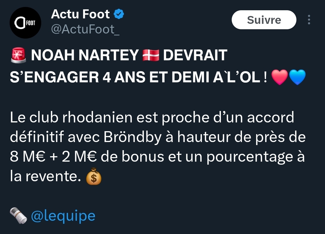 Si on vend Tessmann genre 18 ou 20 pour le chopper câest assez dingue. Jâattends de voir les vrais montants et que les choses se confirment, mais ça paraĂźt ĂȘtre une trĂšs bonne pioche ce gars. Vraiment de nombreux suiveurs annoncent un joueur qui va beaucoup apporter Ă lâĂ©quipe. Vu les pioches Moreira, Sulç, Morton et plus rĂ©cemment Kluivert, jâai full confiance au staff. ![]()