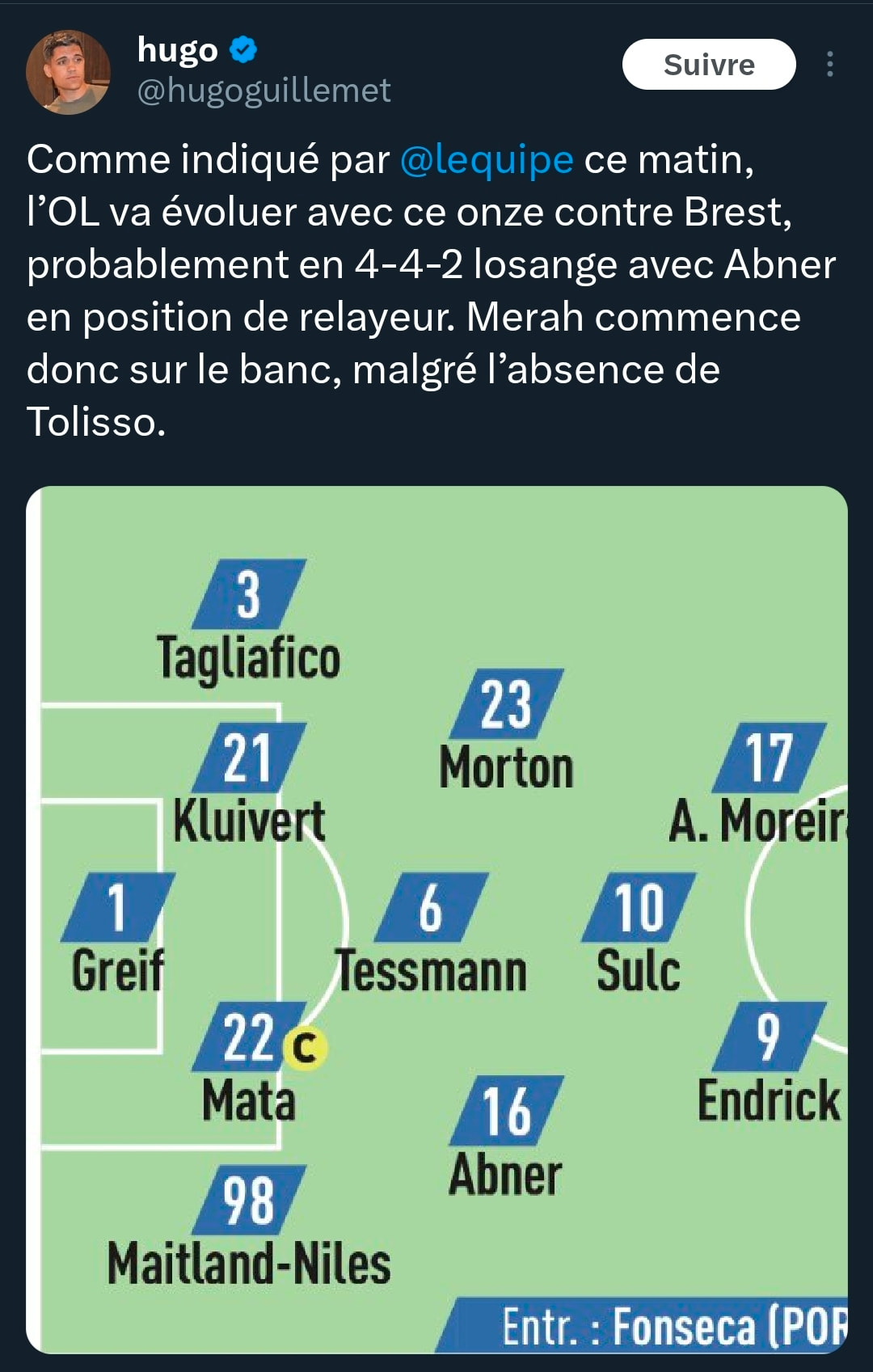 Confirmé également par Hugo Guillemet !