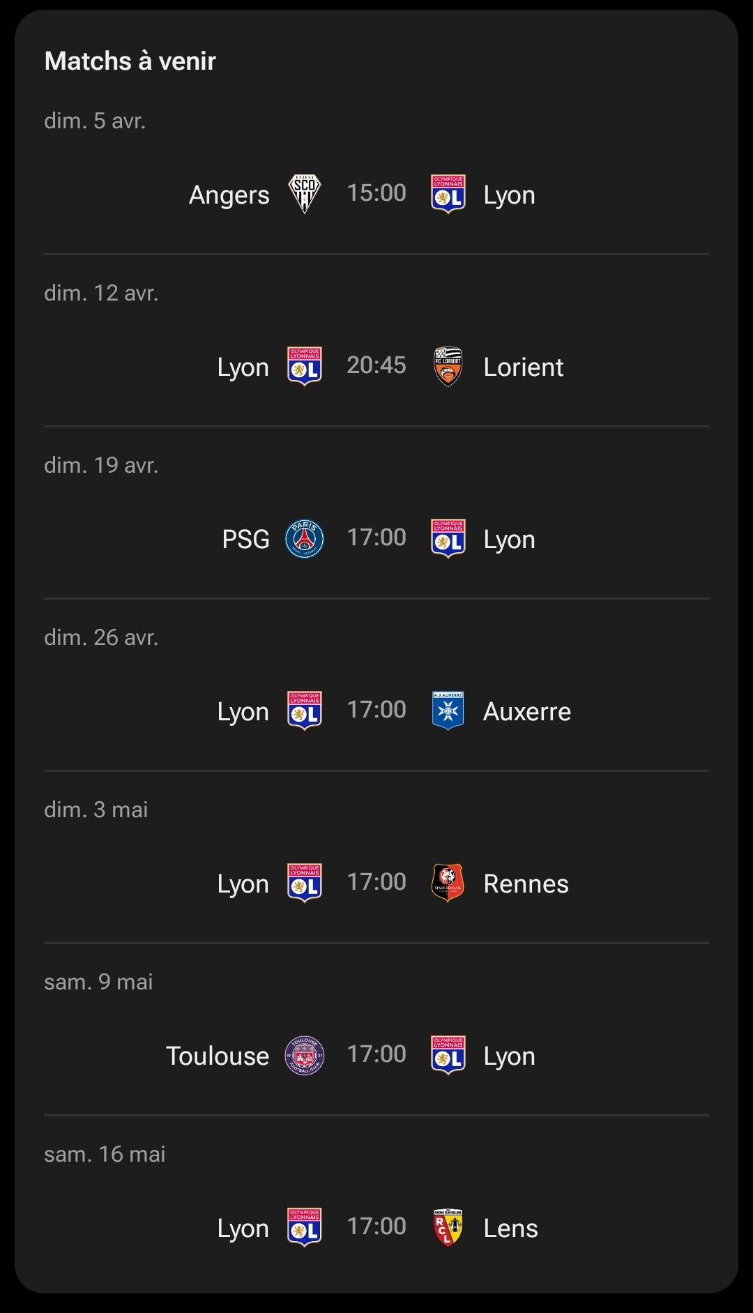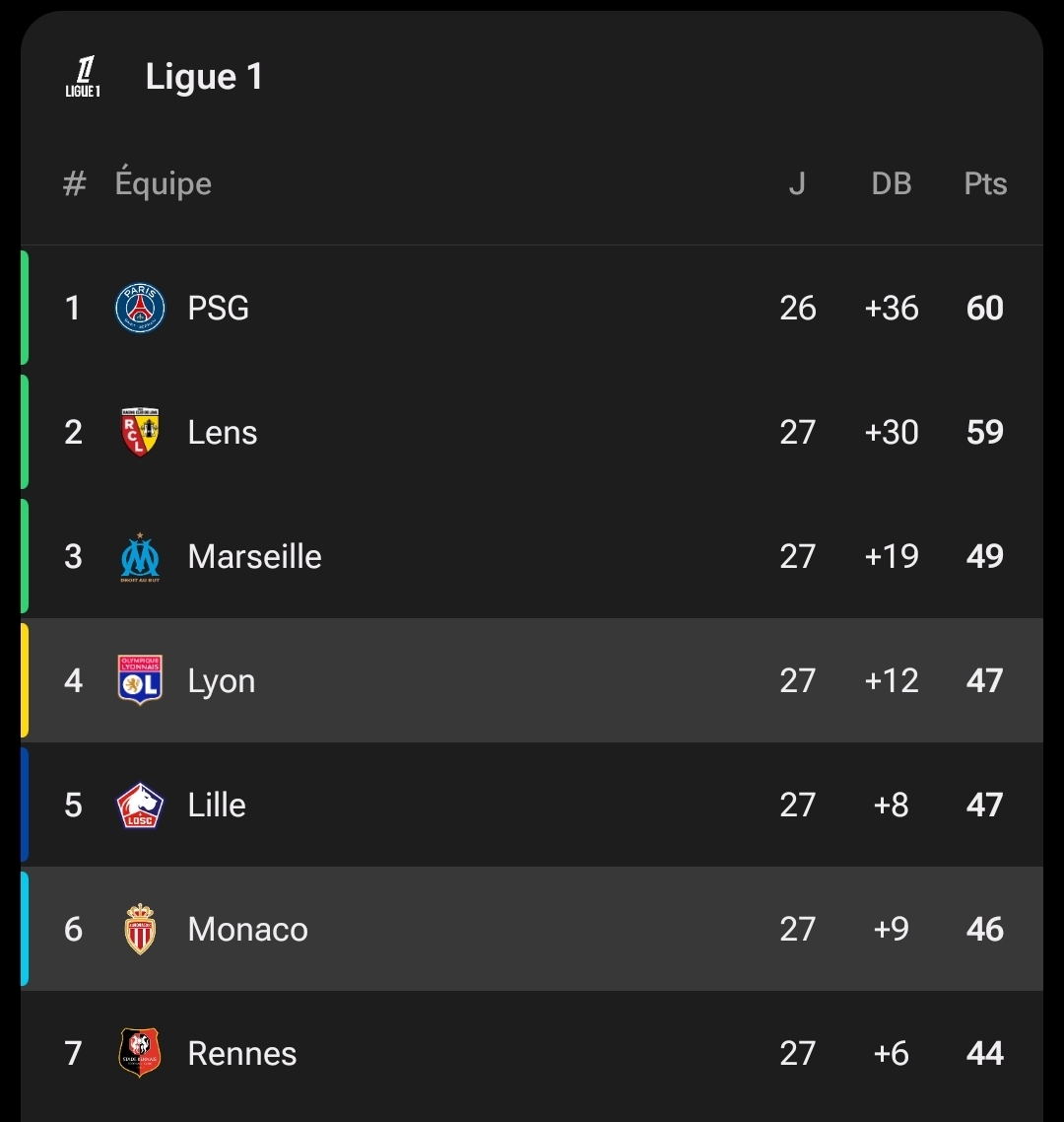 ça va pas ĂȘtre facile pour Lyon avec Paris, Rennes et Lens Ă jouer ![]()
