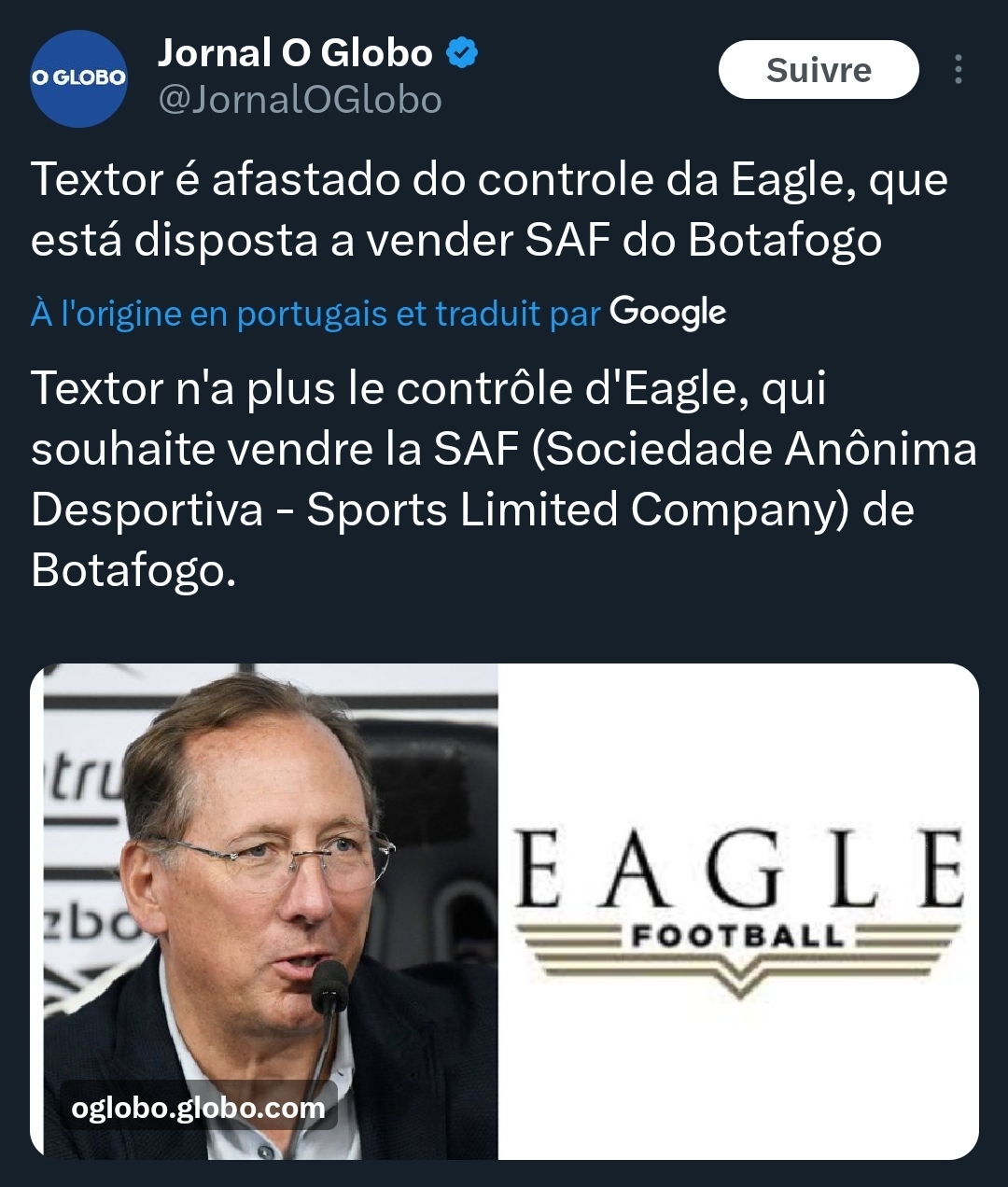 Et au BrĂ©sil ça parle quâEAGLE est vendeur pour Botafogo :