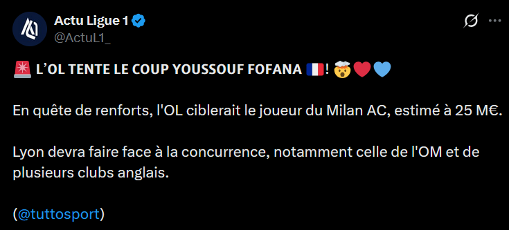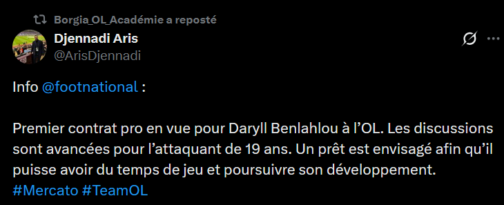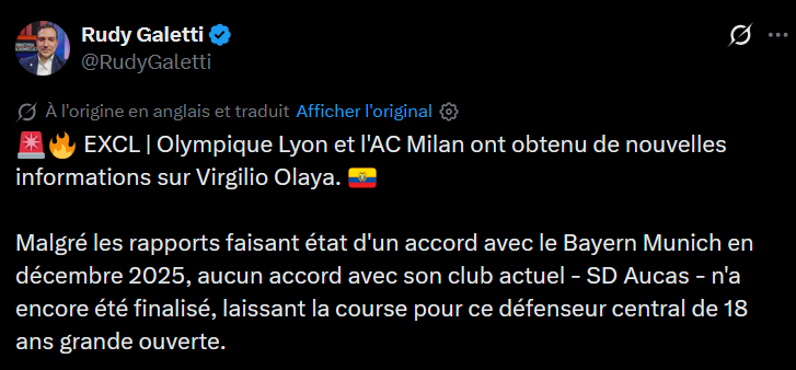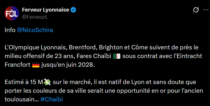 Du cĂŽtĂ© de lâItalie ça parle dâun intĂ©rĂȘt de lâOL pour ce joueur (formĂ© dans la rĂ©gion lyonnaise dâailleurs) :