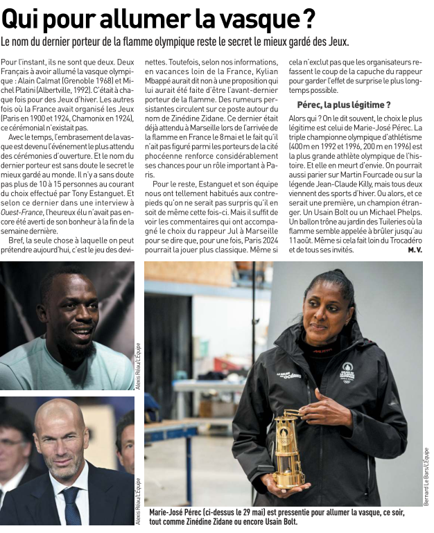 Mais pourquoi Zizou ? Ce n’est pas un olympien. Sans dire que ça me choquerait, je ne trouve pas ça top. ![]()