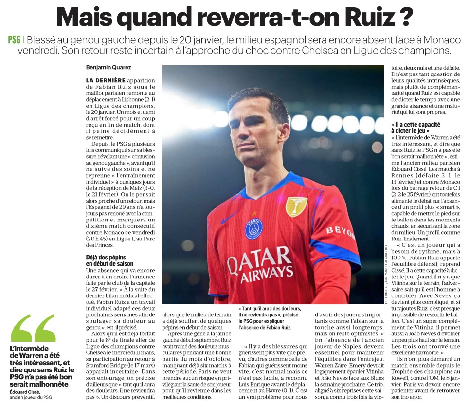 Il a ratĂ© son match. Je lâaime bien ce petit mais hier il est passĂ© au travers. Pas aidĂ© par une Ă©quipe plutĂŽt apathique, un Dro perdu, un Vitinha Ă©moussĂ© et une attaque oĂč seul Barcola faisait les efforts.