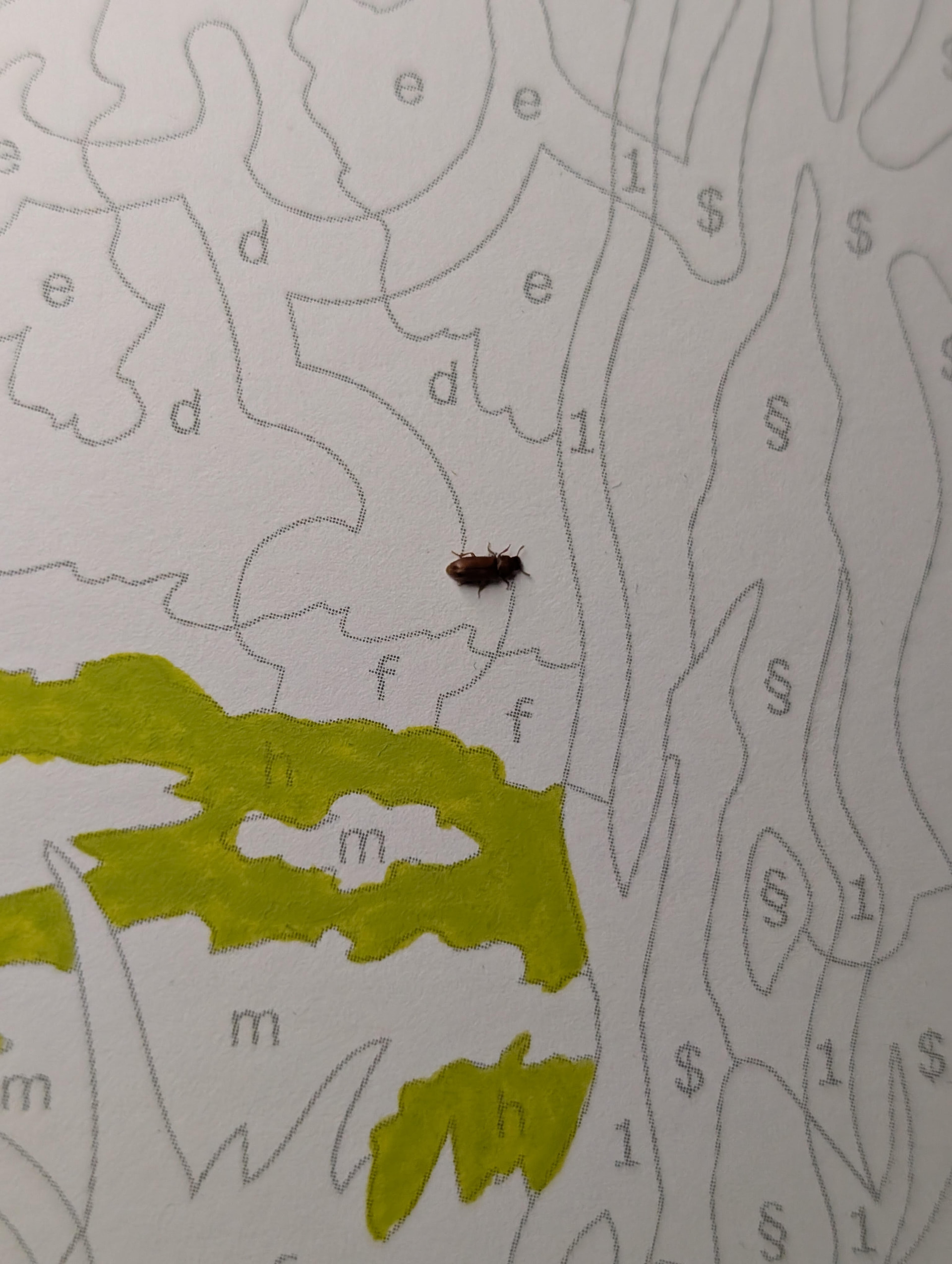 J’ai pensé à des cafards au départ, mais d’après mes souvenirs ça n’y ressemble pas vraiment et je n’ai aucune bestiole dans la cuisine, c’est uniquement en haut.