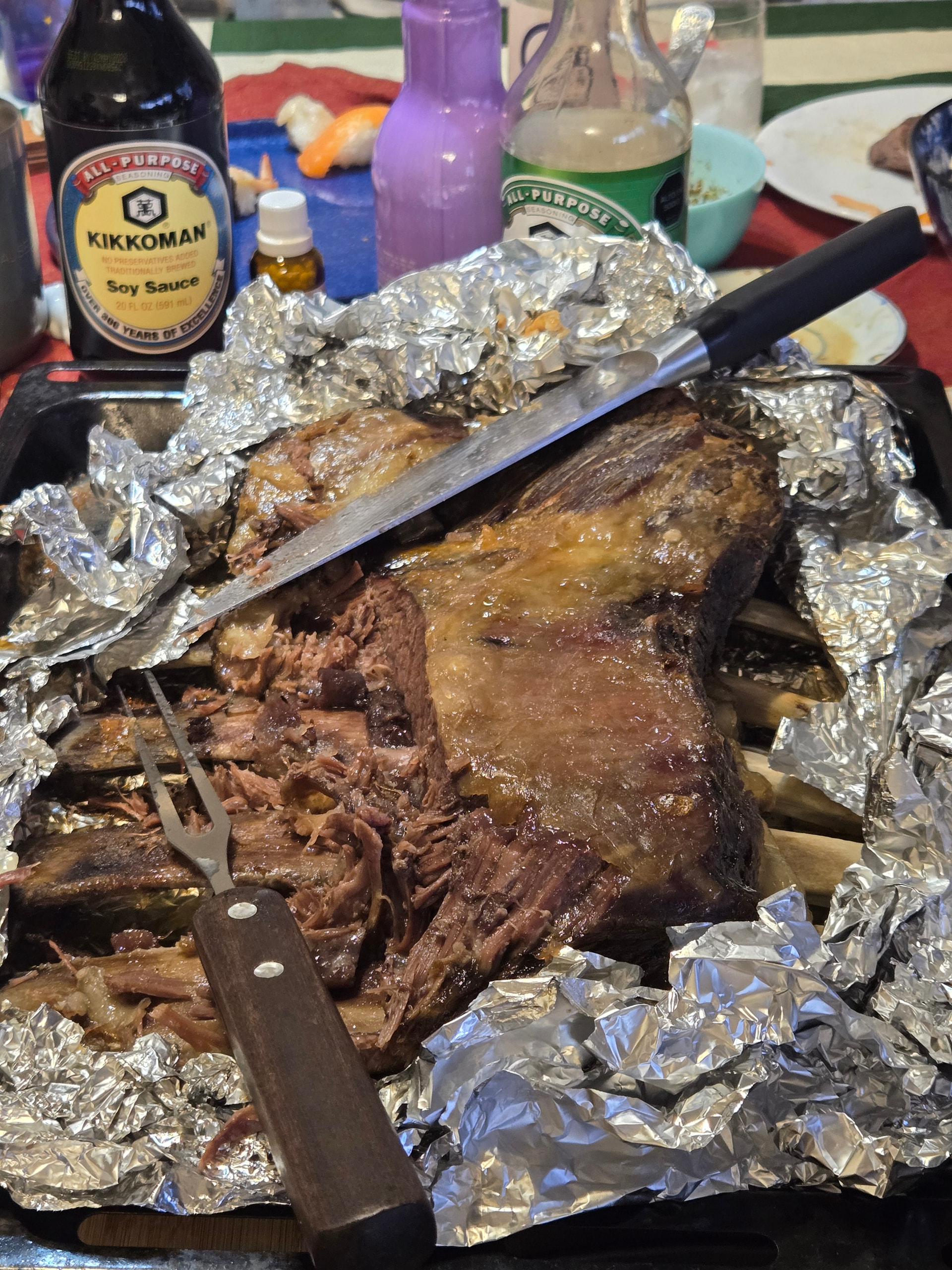 Cuit 8-10h a feu tres bas au barbecue, ca fond dans la bouche !