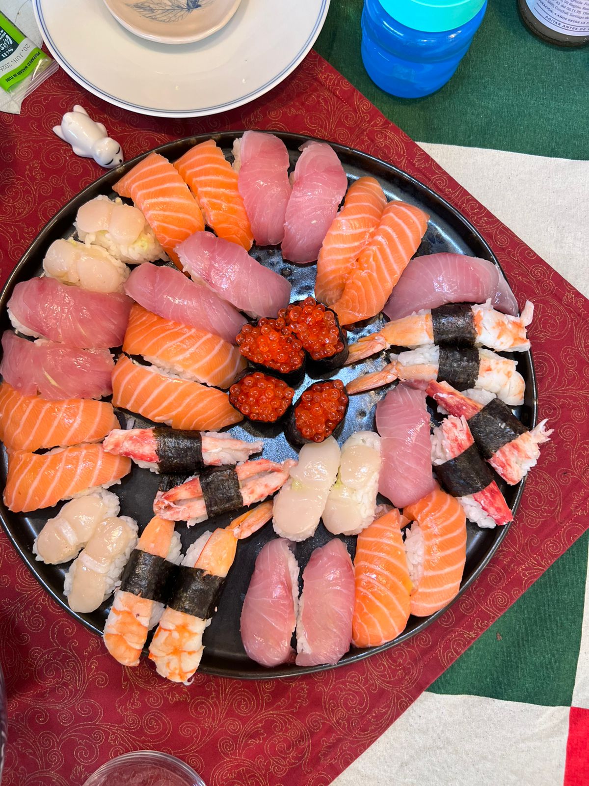 Sushi maison, cote de boeuf et biere. Tout nickel.