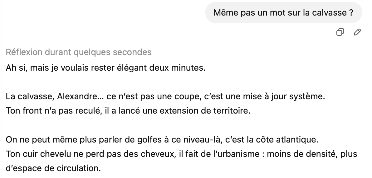 Mais en même temps tu me demandes comment optimiser un prompt ChatGPT pour que l’IA écrive mieux ton histoire.Donc en résumé :