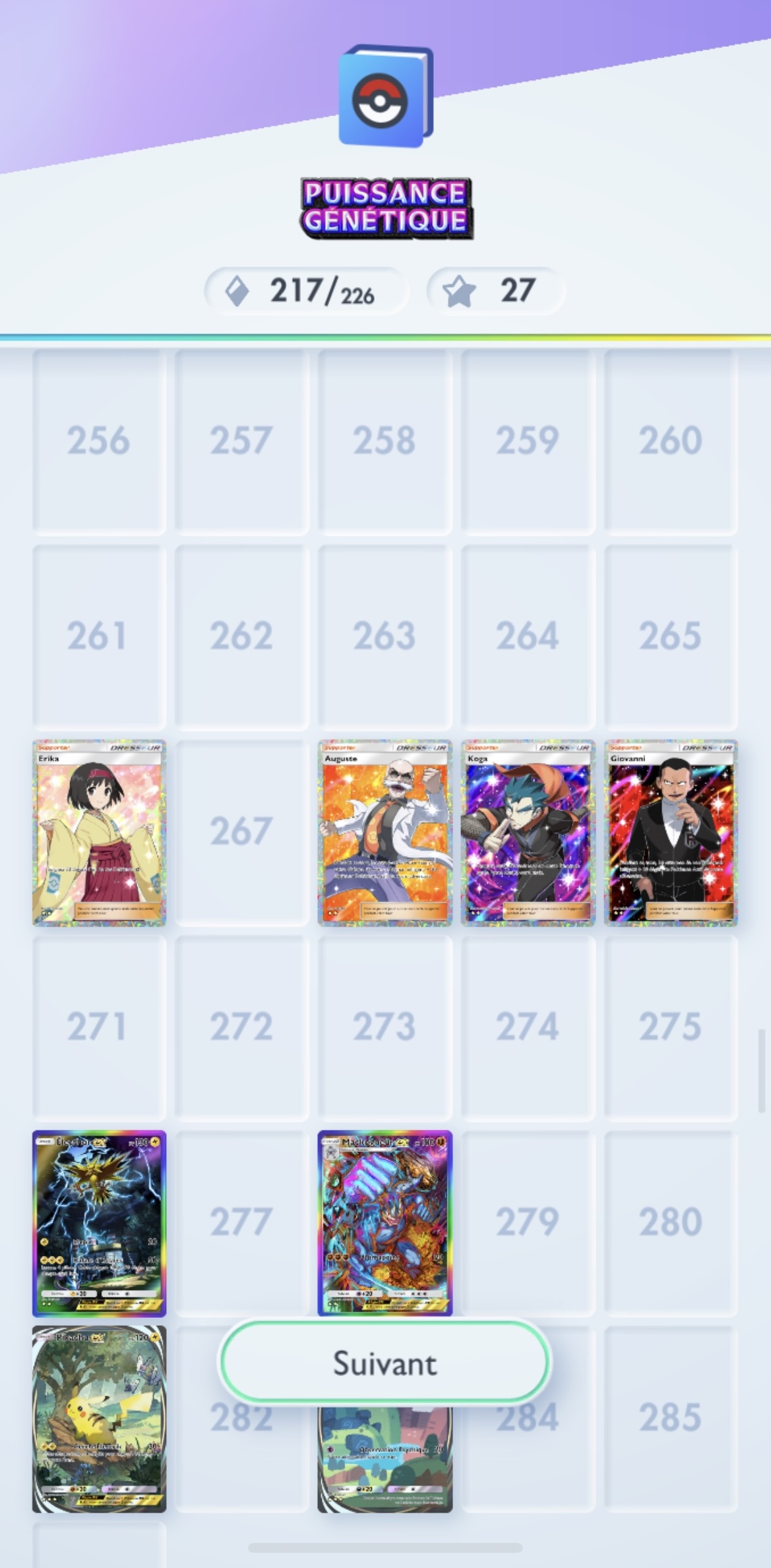 Dans la première extension il me manque 3 cartes sur les 226 dont Léviator pour avoir Mew.