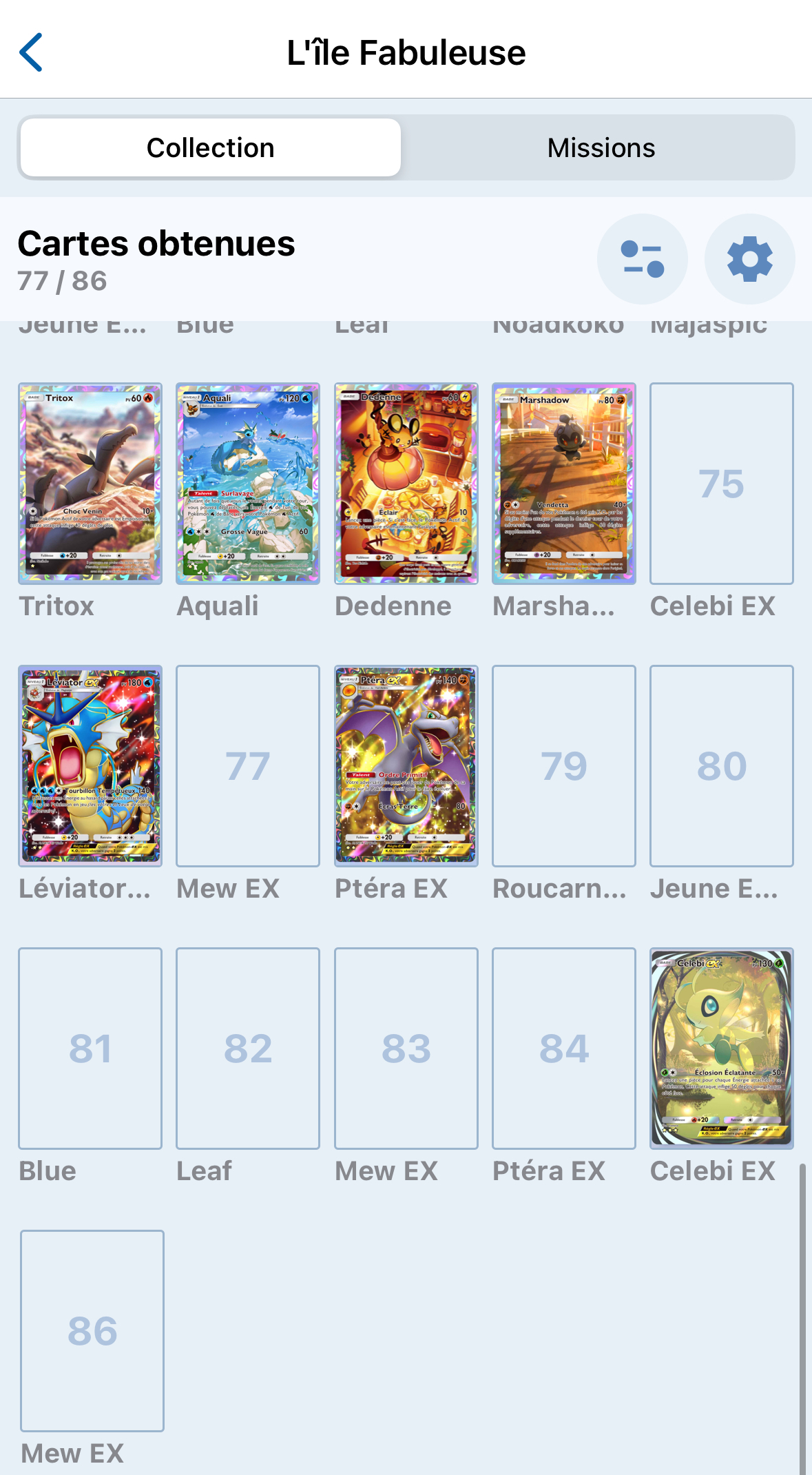 Et là tu pourras même cliquer sur les troues pour voir les noms des Full Art manquantes. Ça débloque toutes les cartes possibles.