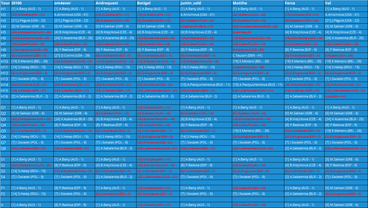 - Peu de surprises chez les hommes, beaucoup chez les femmes (mais peut on vraiment parler de surprise quand ça arrive à chaque tournoi ? )