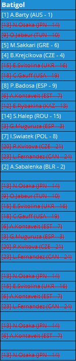 - Ce qui nâest pas le cas de @Batigol, qui nâa dĂ©sormais plus de 1/4 de finaliste encore en jeu dans son bracket
