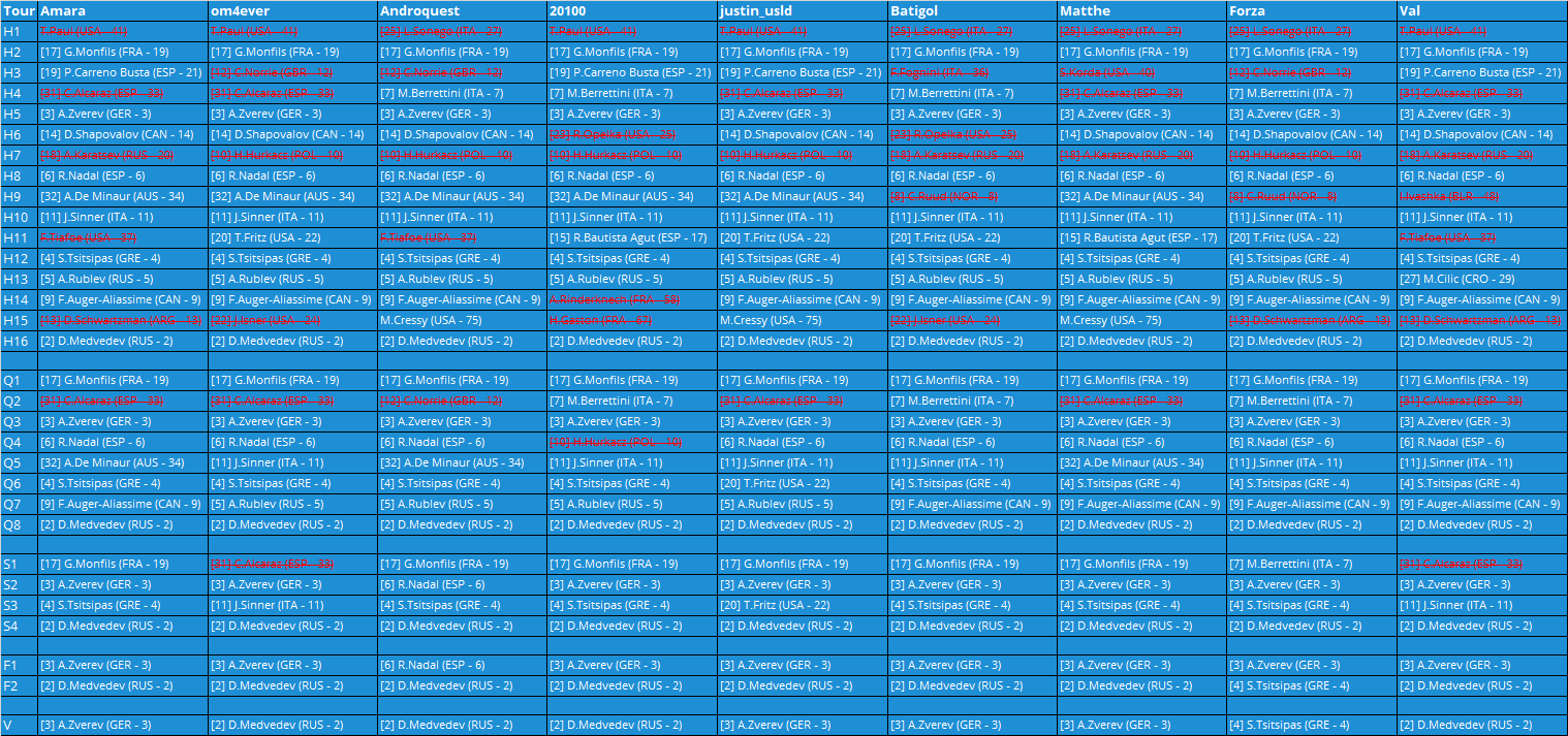 - CotĂ© messieurs, ça reste dans lâensemble propre pour lâinstant, en particulier @Matthe qui a encore tout ses qualifiĂ©s en 1/8 encore en lice (quand nous autres en avant entre 2 et 4 de out)