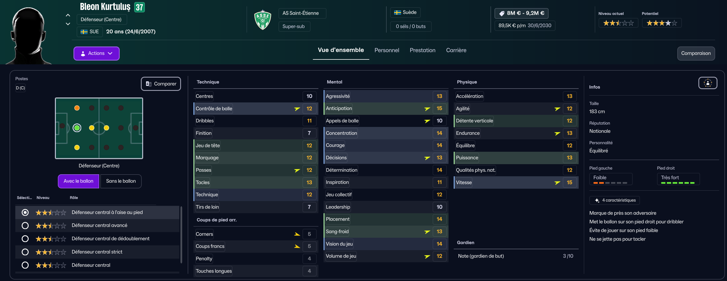 J’ai donc d’abord recruté Bleon Kurtulus pour 850k, grand espoir suédois de Halmstad pour entrer en rotation avec Nadé en remplaçants.