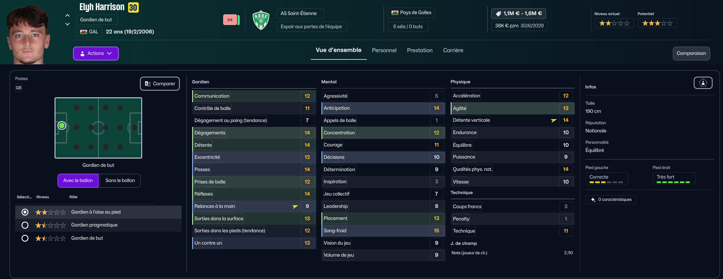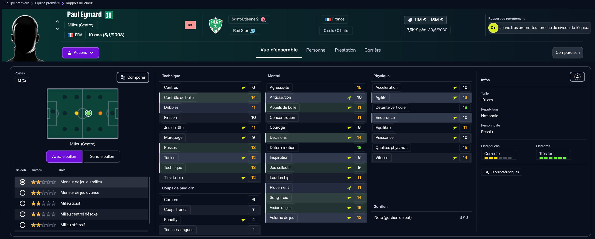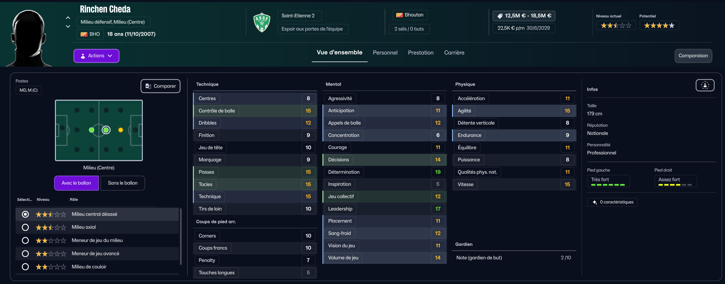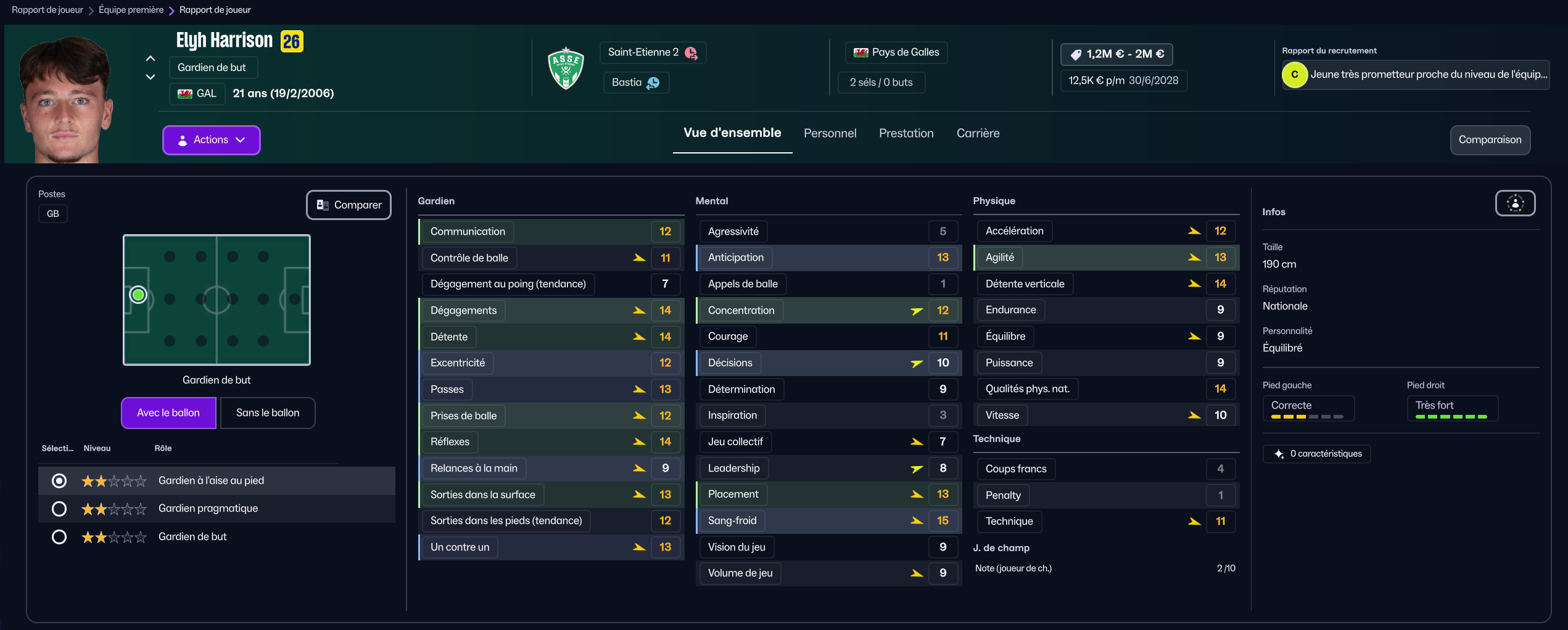 Stojkovic beaucoup trop tendre, il est parti en prêt. J’ai recruté Nafouel El Hannach 500k de la reserve du PSG pour faire tourner un peu. J’ai aussi sauté sur l’occasion de recruter la pépite géorgienne Sareba Kharebashvili de Tbilisi pour 2.7m€ qui est arrivé au mercato d’hiver aussi, pour entrer en rotation.
