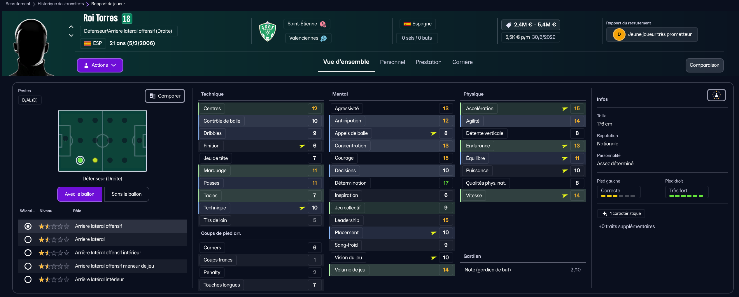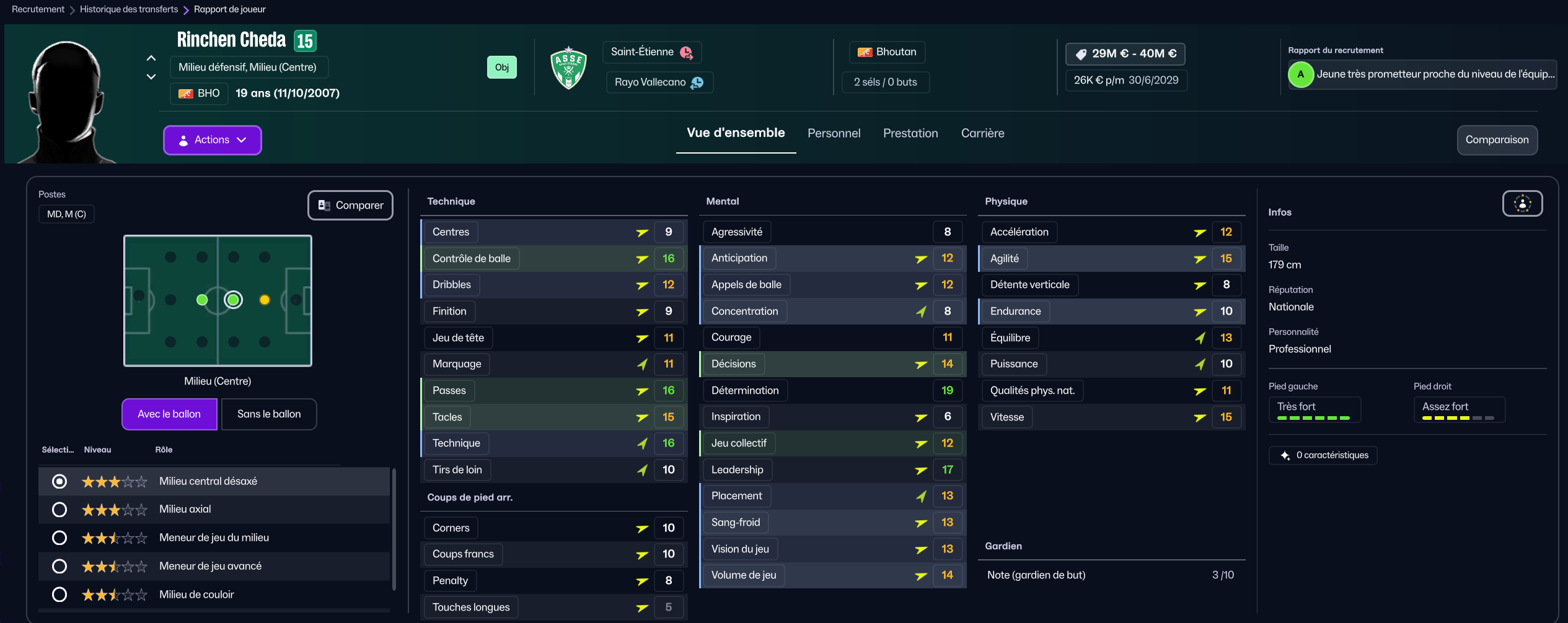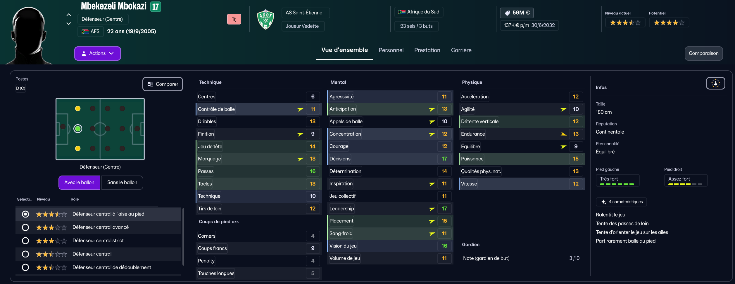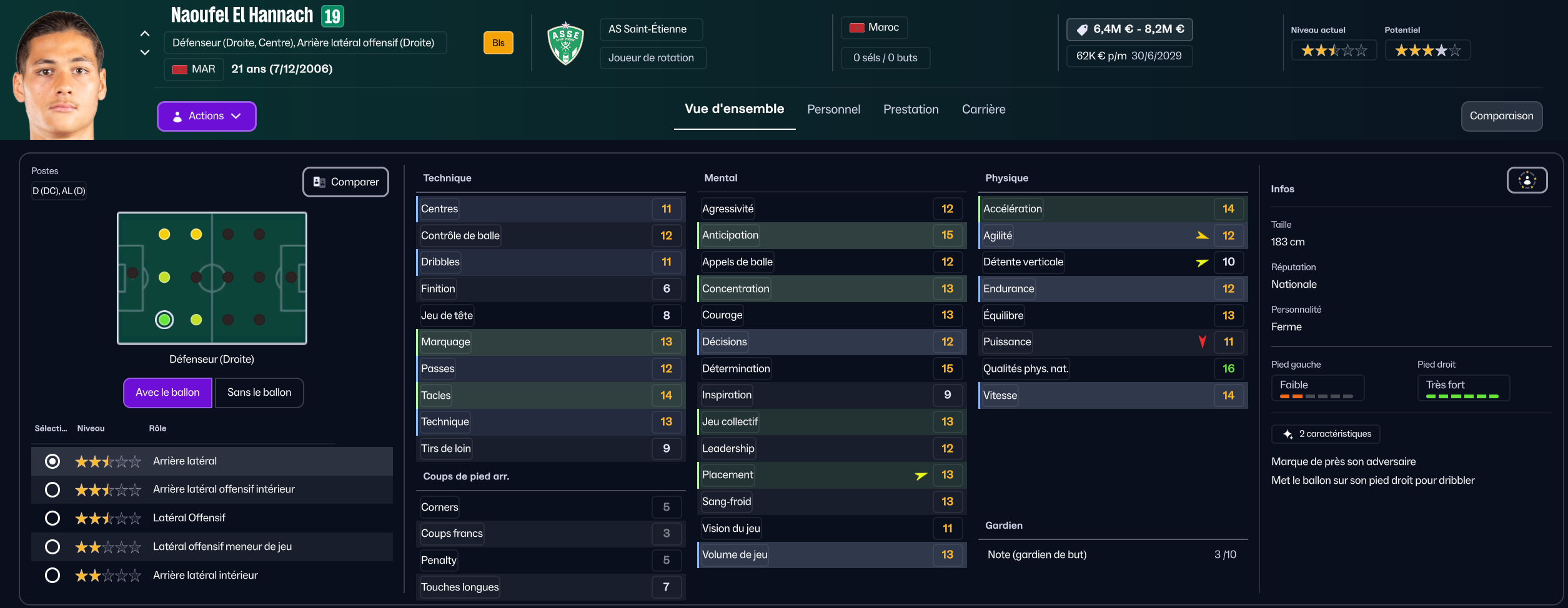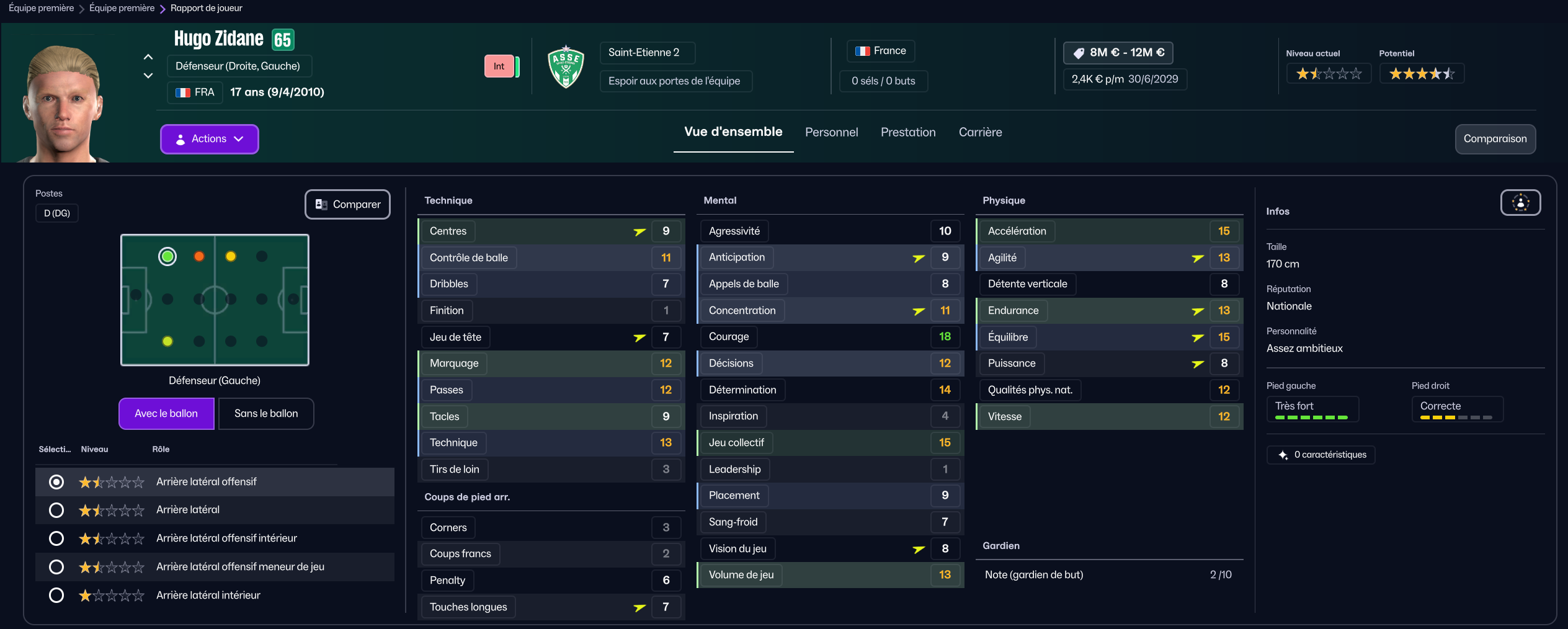 Stojkovic beaucoup trop tendre, il est parti en prêt. J’ai recruté Nafouel El Hannach 500k de la reserve du PSG pour faire tourner un peu. J’ai aussi sauté sur l’occasion de recruter la pépite géorgienne Sareba Kharebashvili de Tbilisi pour 2.7m€ qui est arrivé au mercato d’hiver aussi, pour entrer en rotation.