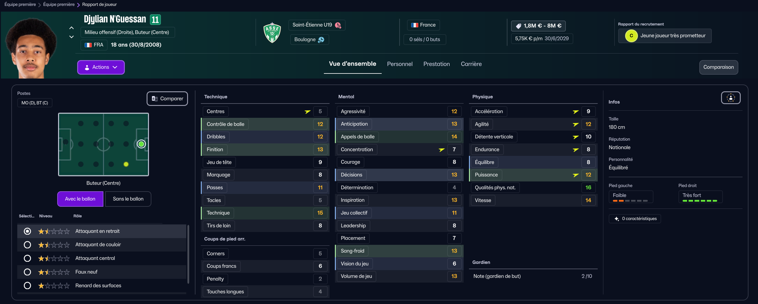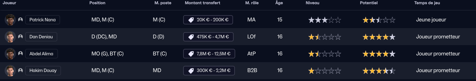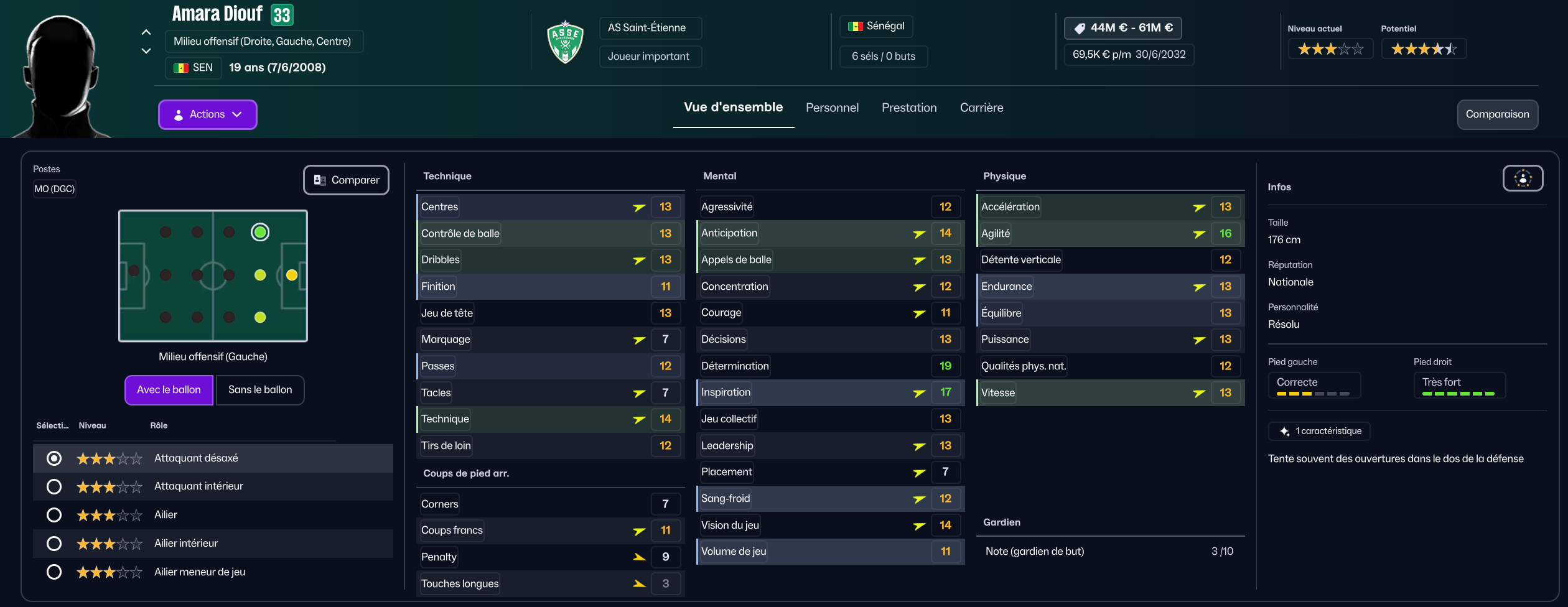 J’ai ensuite recruté la pépite sénégalaise de Generation Foot Amara Diouf pour 700k, pour entrer en rotation offensive.