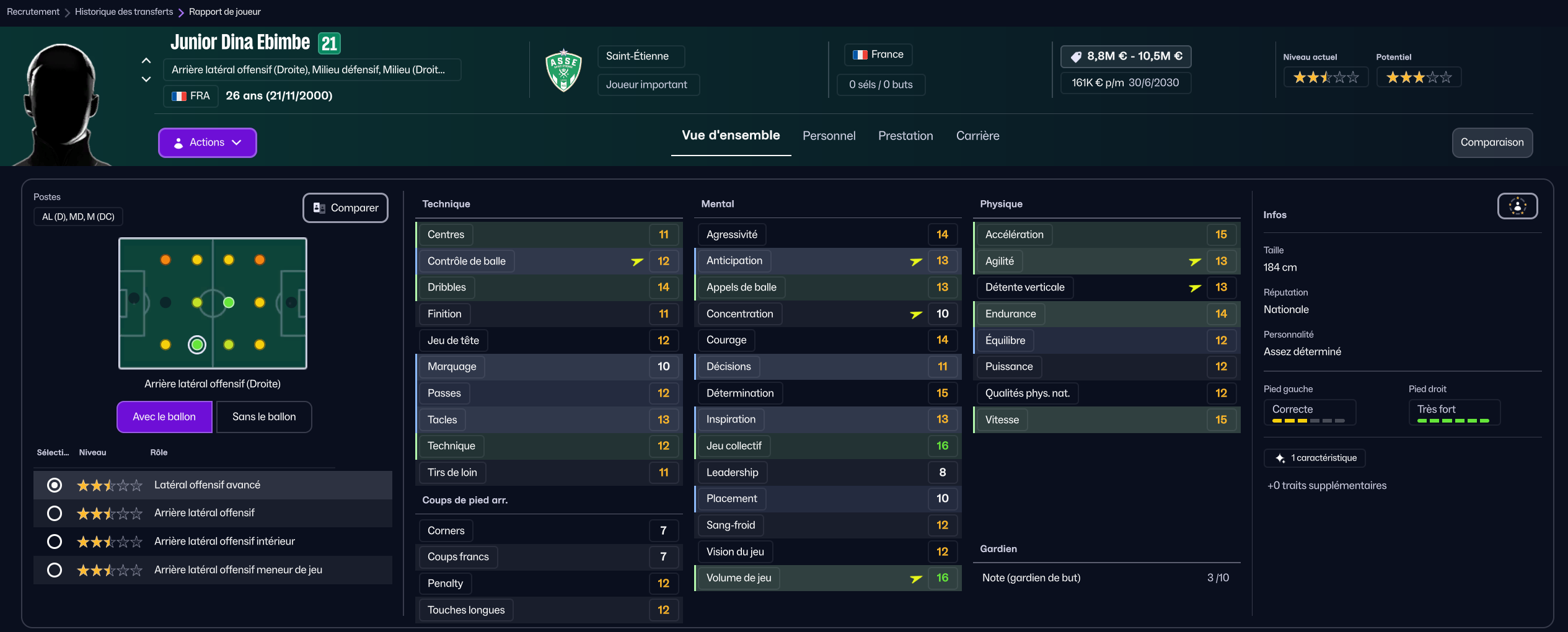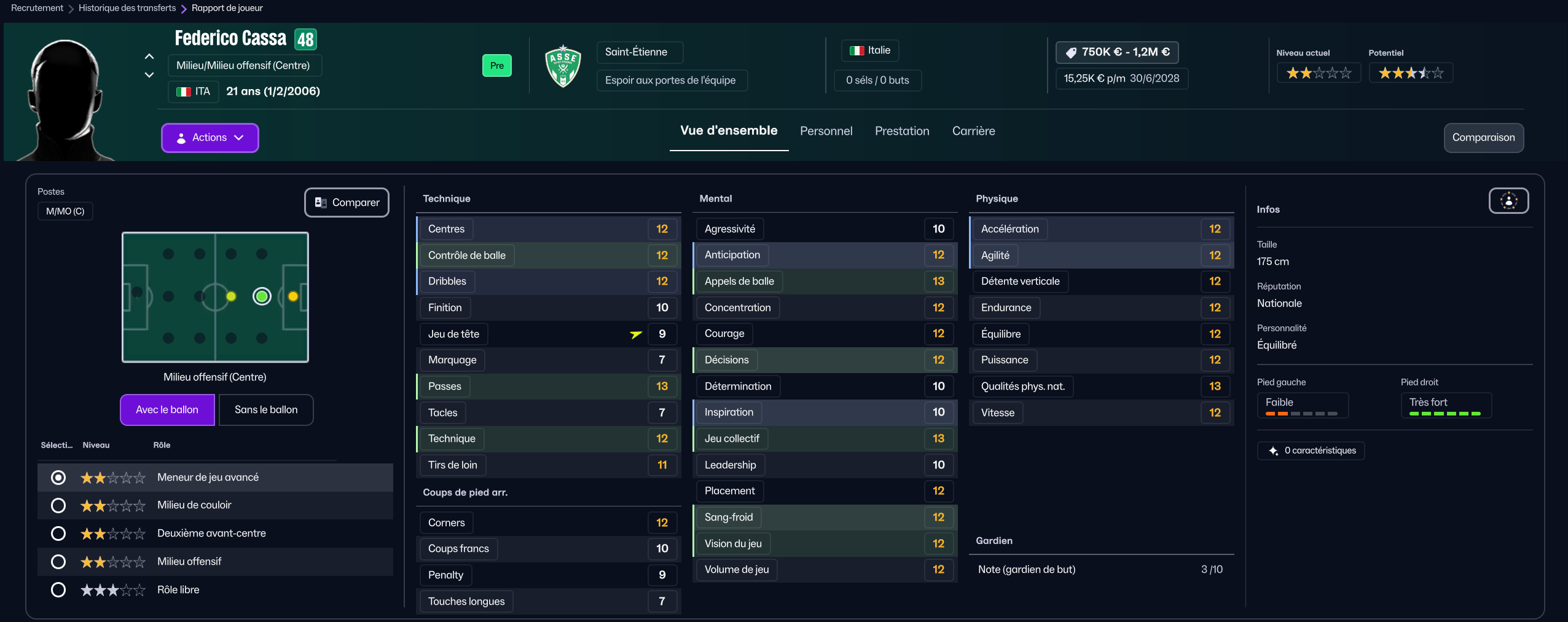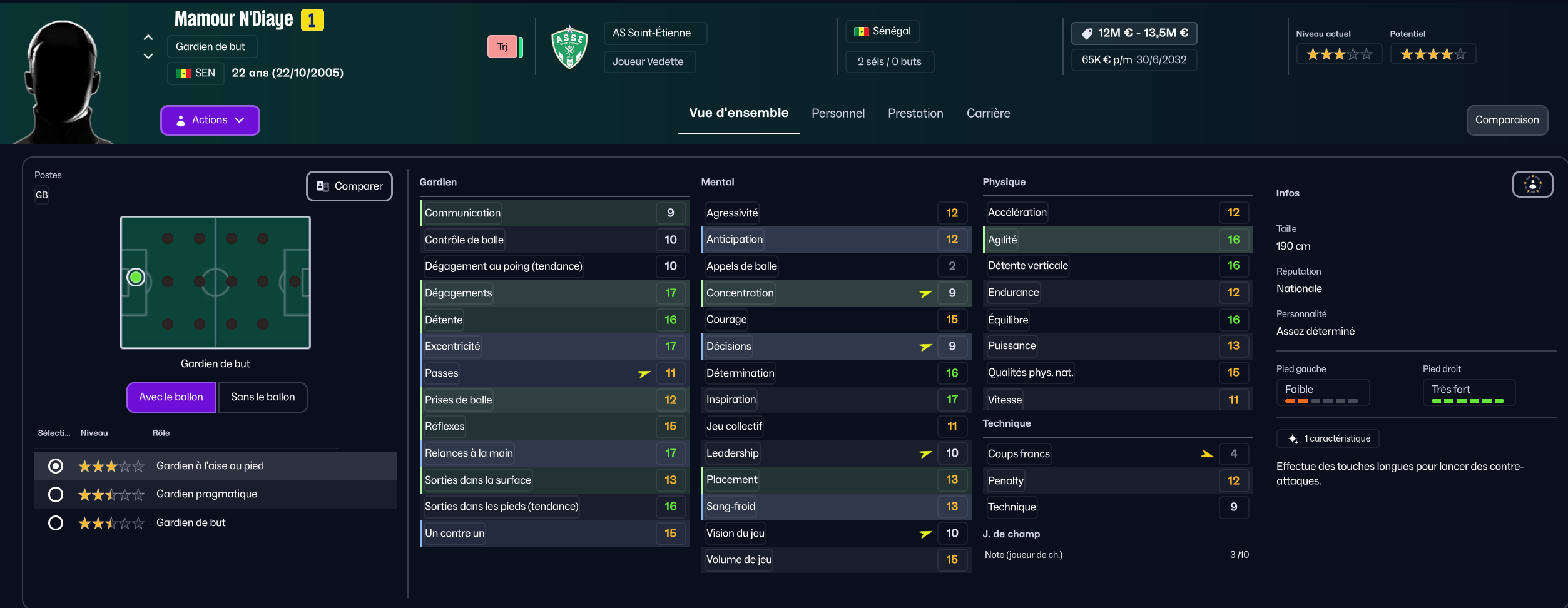 J’ai ensuite recruté la pépite sénégalaise de Generation Foot Amara Diouf pour 700k, pour entrer en rotation offensive.