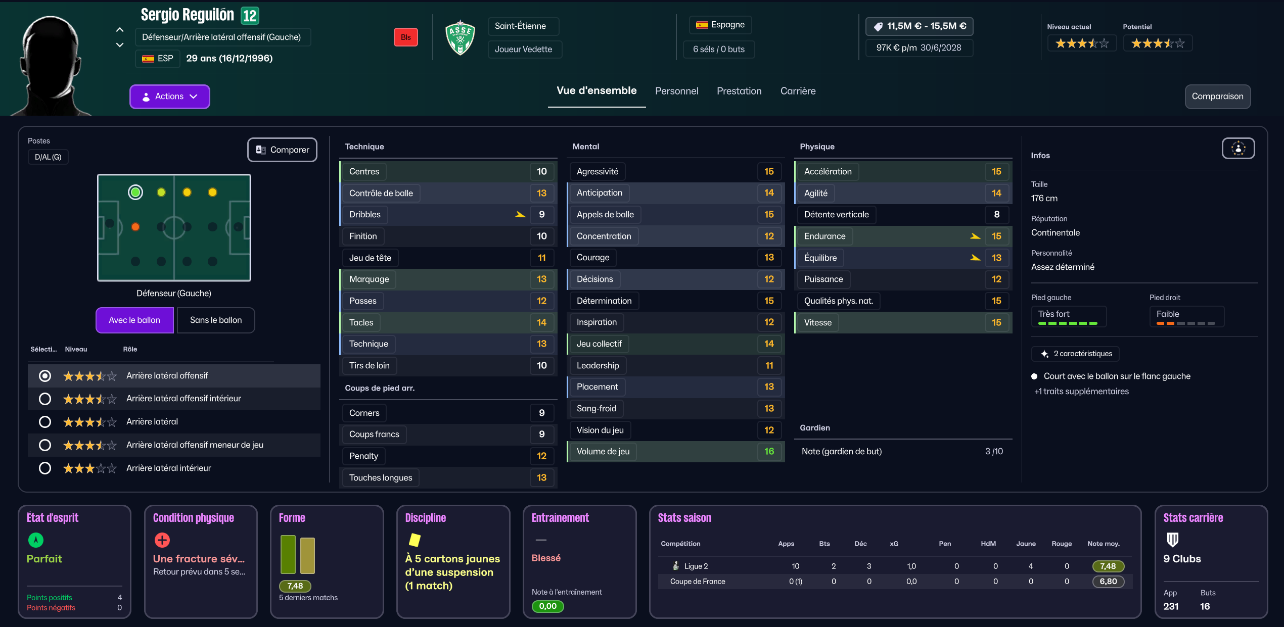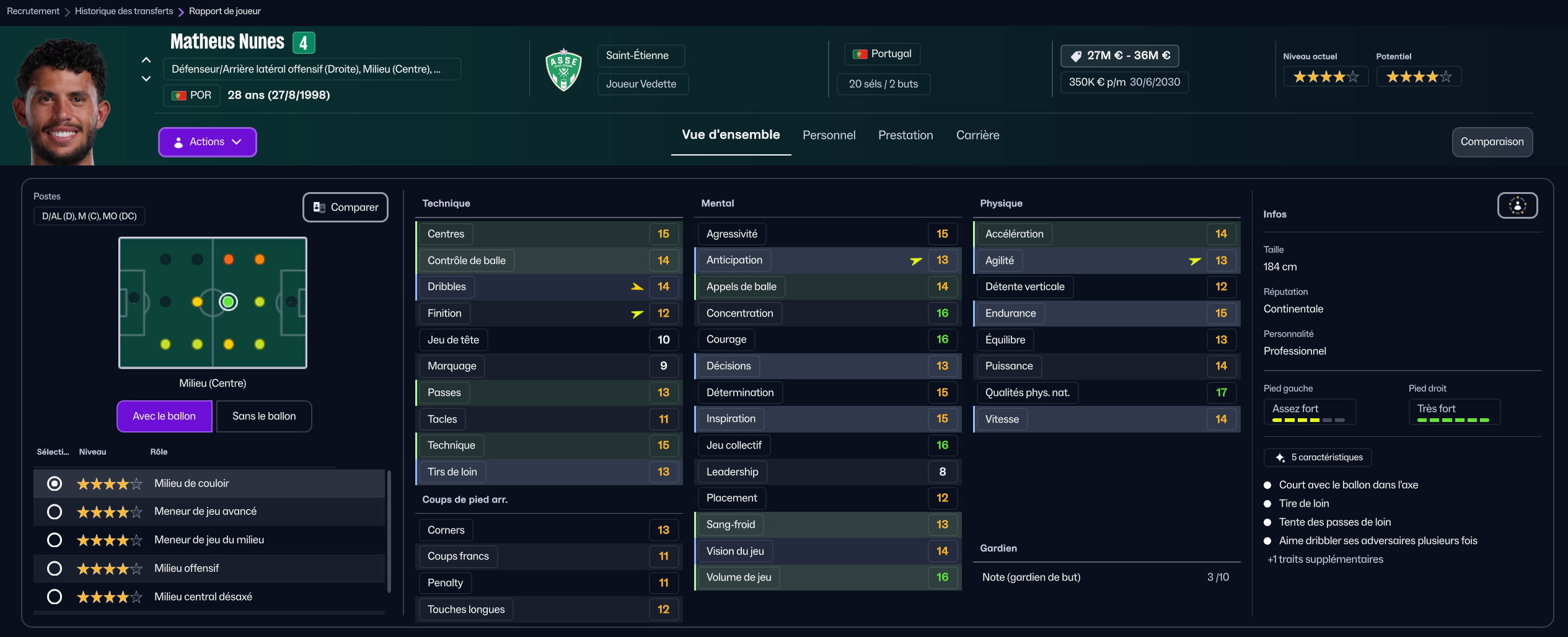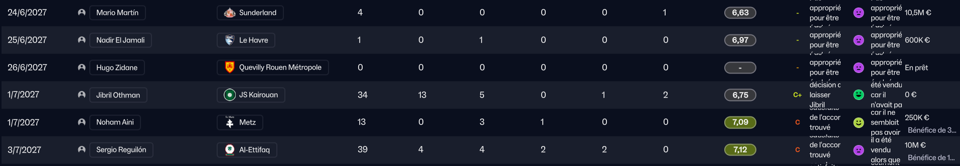 Tout aurait très bien pu tourner mais… Nadé à commencé à faire la gueule de ne pas jouer assez, et malgré son statut de formé au club, j’ai du m’en séparer. Il est parti au mercato d’hiver pour 3.8m€ à Damac, en Arabie Saoudite.