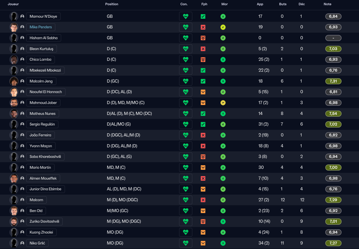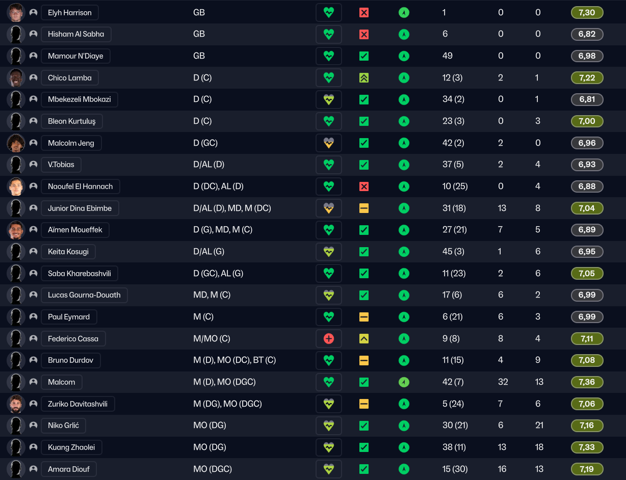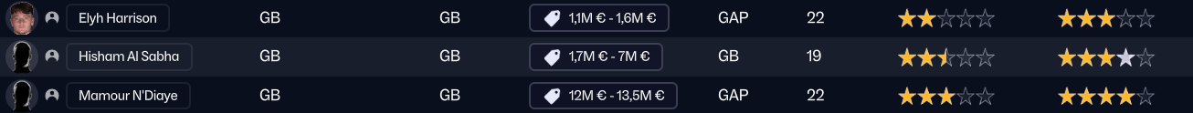 Et pour garnir le banc et les équipes de jeunes, j’ai aussi fait venir Hisham Al Sabha, Elyh Harrison, et Fran Gonzalez dont j’ai prêté les 2 derniers, parce que je manquait fortement de qualité chez les gardiens dans les equipes de jeunes.