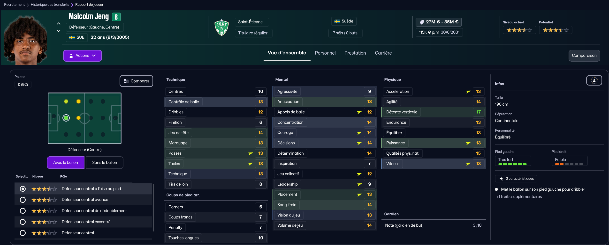 Avec tout ça en plus, j’étais moyennement content de mes deux jeunes un peu trop tendres. Je suis donc allé dénicher Malcolm Jeng au Stade de Reims pour 2.5m€, qui est devenu titulaire indiscutable pour la seconde partie de saison.