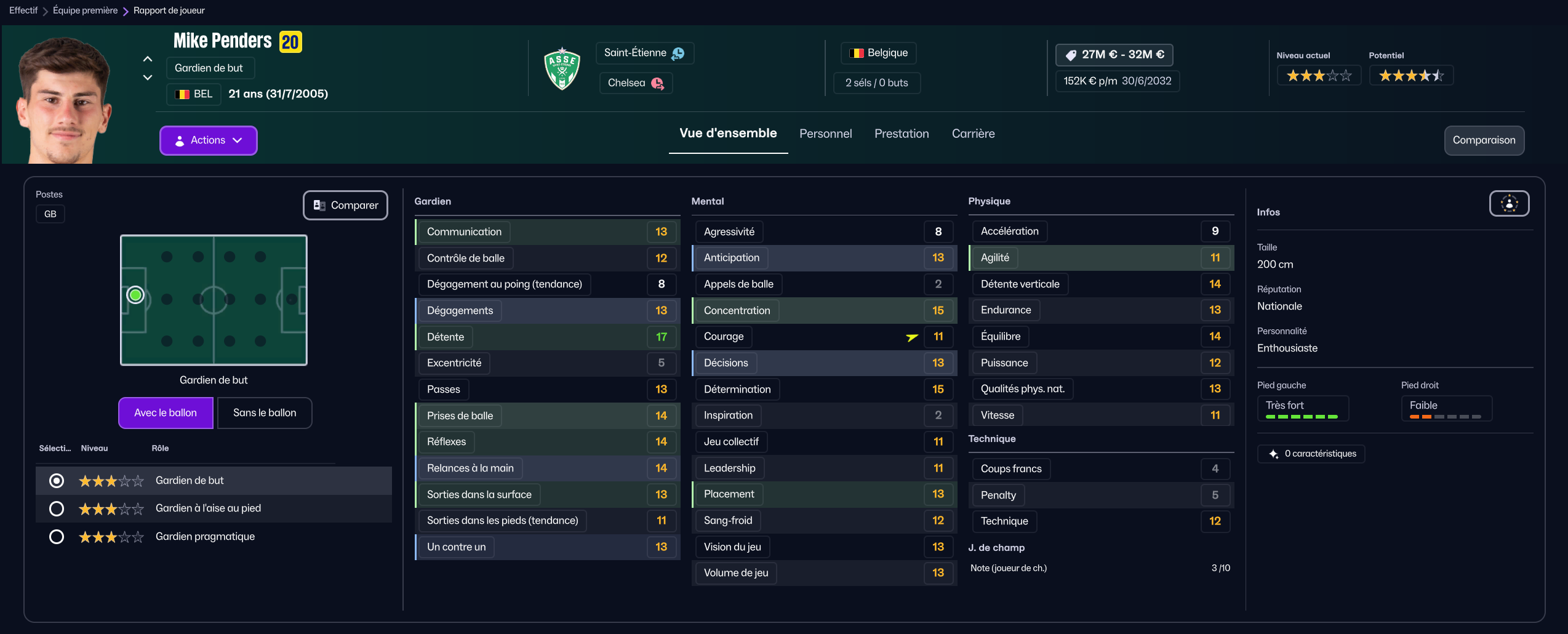 Mais l’effectif à commencé à faire la gueule concernant le « manque de qualité » aux cages. Je me suis alors fait prêter Mike Penders de Chelsea (à Strasbourg la saison d’avant) et ça a calmé tout le monde.