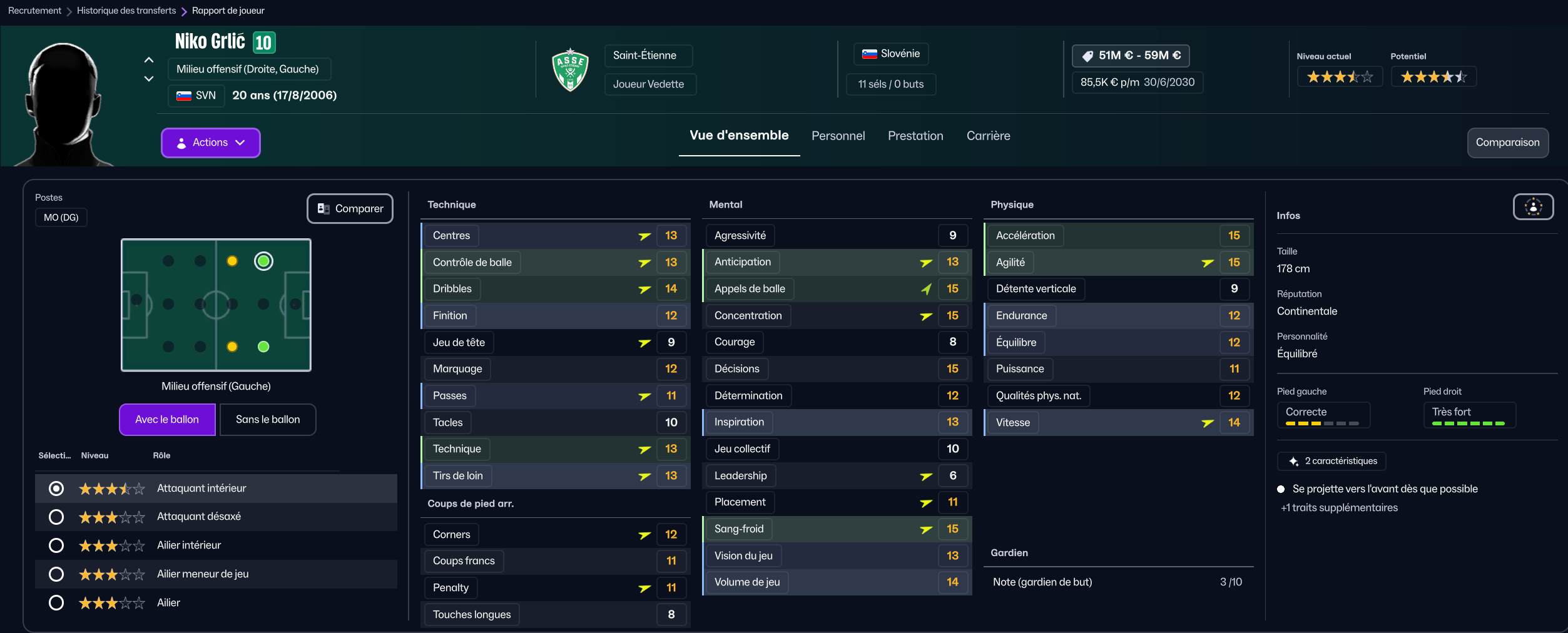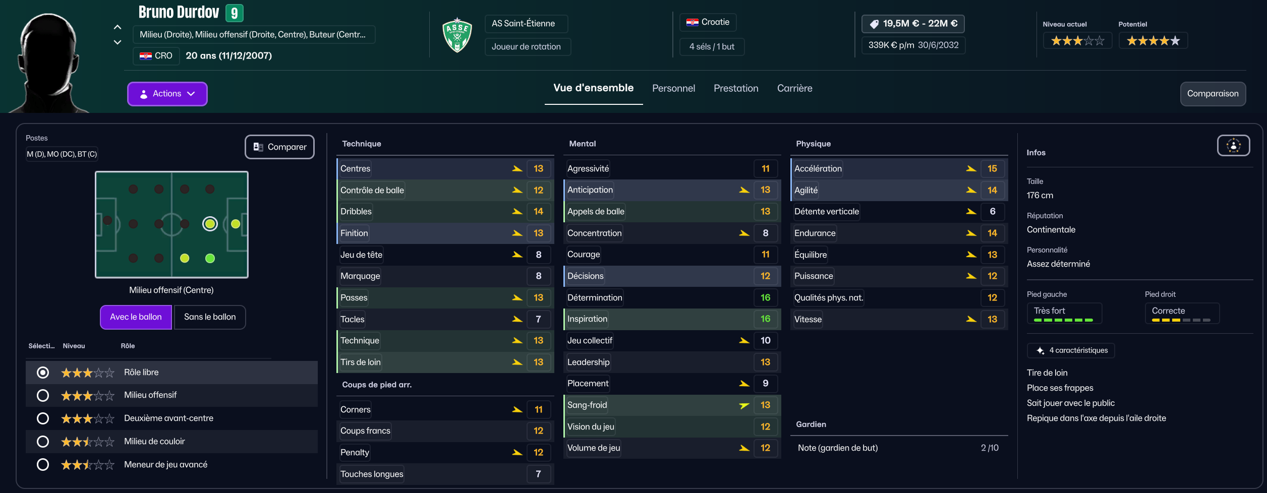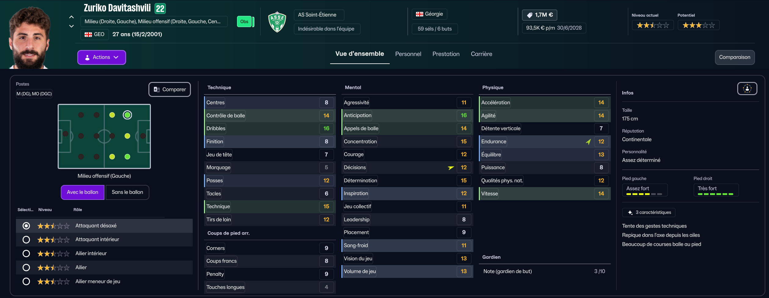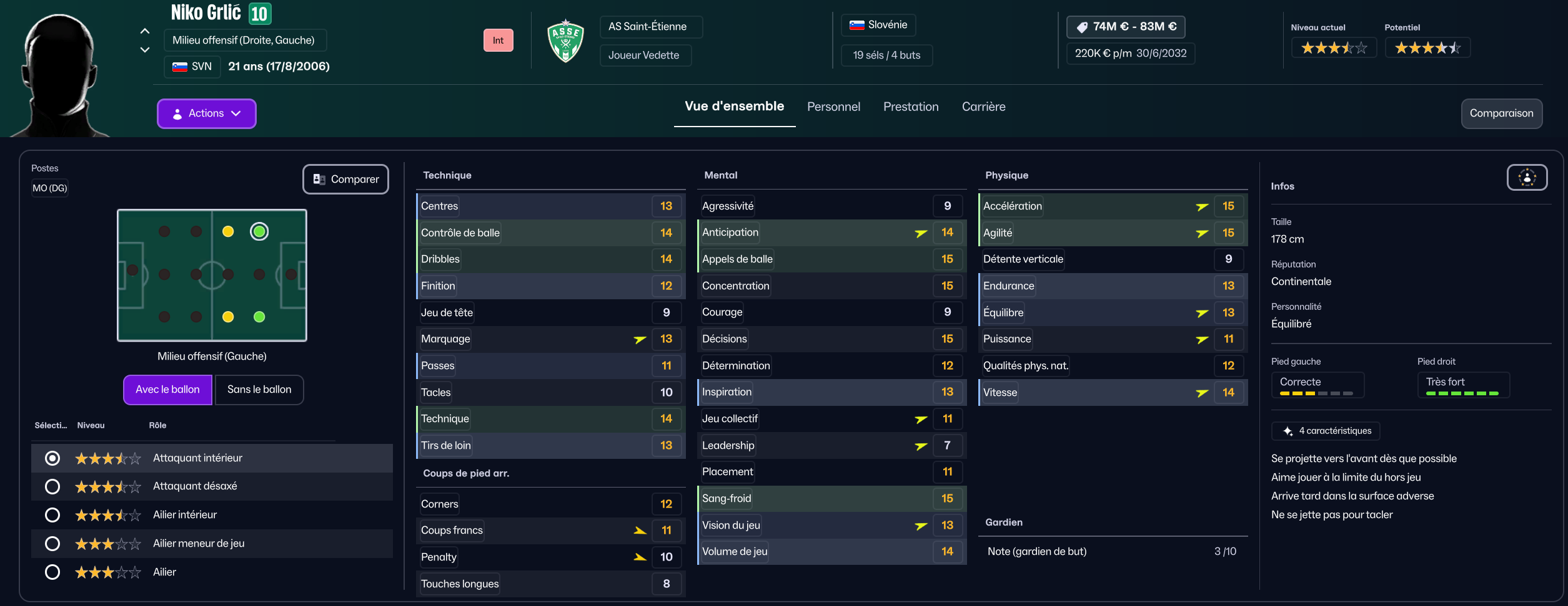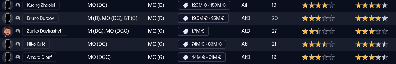 Dernier renfort offensif mais pas des moindres, j’ai mis seulement 850k à Maribor pour la pépite slovène Niko Grlic qui sera titulaire sur l’aile gauche, en rotation avec Davitashvili.
